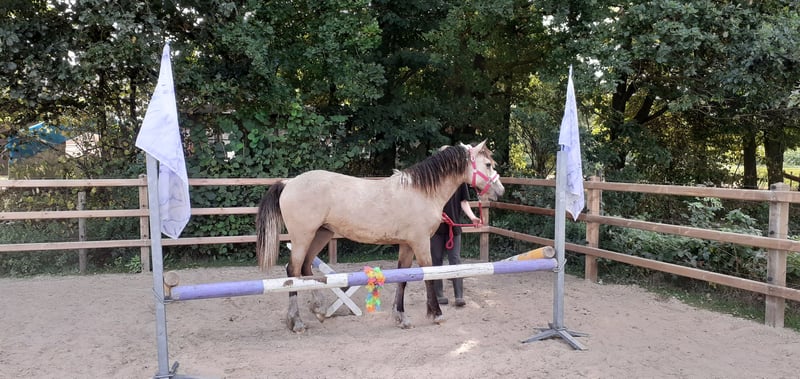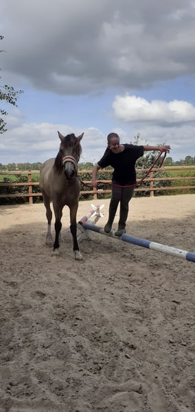 *** Heavenlysmile's Yen-Ai *** Notre Yen-ai est une jument merveilleusement belle. Elle aura un an à la fin juillet et aime toujours téter sa mère ;-) Elle mesurera entre 1,60 et 1,63 m, tout comme son frère et sa sœur pleine (voir les dernières photos). Yen-Ai est un poulain spécial pour nous, issu de notre propre élevage depuis trois générations ! Notre passion est entièrement investie en elle et cela se reflète dans tout <3 Yen-Ai est élevée pour le sport et les loisirs. C'est un type de cheval très puissant avec beaucoup d'énergie. Une véritable beauté, un joli coup d'œil ! Elle porte le gène en elle. Cela signifie qu'elle aura en hiver un beau pelage plein de mini-boucles et une belle crinière et une queue pleine de boucles. Elle est également hypoallergénique. Nous élevons des Curly Horses depuis 11 ans. (17 ans avec des Welsh Cobs :) ) Notre objectif est d'élever un cheval très amical et polyvalent, hypoallergénique. Cela convient aux jeunes et aux moins jeunes, pour les loisirs et le sport de haut niveau ! Nous offrons à tous nos animaux les meilleurs soins possibles, avec les vaccinations appropriées et des soins des sabots en temps voulu. Nos prix indiqués sont hors TVA, inspections et frais de transport. Si vous souhaitez plus d'informations ou avez des questions, n'hésitez pas à m'envoyer un message !