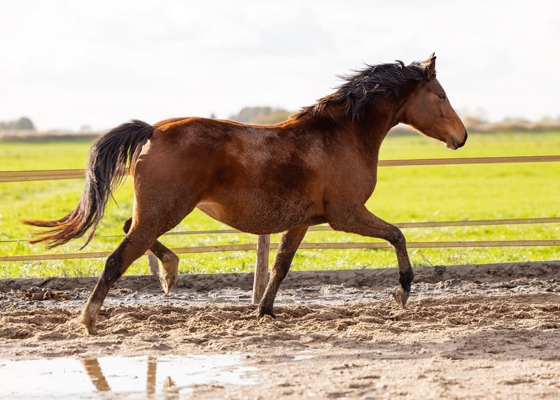Mit schwerem Herzen, aber im Hinblick auf eine passende Zukunft, bieten wir unsere außergewöhnlich talentierte junge Pony-Stute Royal Reanna an. Anna ist eine moderne, ansprechende Welsh-Stute mit außergewöhnlichem Talent, Ausstrahlung und Sportlichkeit. Ein Pony, das durch Kraft, Balance und eine natürliche Bewegungsweise sofort auffällt. Anna wurde am 7. Juni 2022 geboren und ist noch unterm saddle, sodass sie vollständig nach den Wünschen des neuen Besitzers ausgebildet werden kann. Im Freilauf zeigt sie viel Qualität, mit viel Abdruck und einer starken Nutzung des Körpers. Ihre Bewegungsart und Haltung machen sie äußerst interessant für den Turniersport und eine weitere Ausbildung auf hohem Niveau. Sie stammt aus einer starken Mutterlinie, direkt vom Züchter, und verfügt über einen korrekten Körperbau sowie ein arbeitswilliges, nüchternes Wesen. Im Umgang ist Anna freundlich, menschenbezogen und neugierig. Sie nimmt neue Situationen leicht auf und lässt sich angenehm handeln. Sie ist brav beim Tierarzt, Hufschmied und beim Putzen. Anna kann klinisch und röntgenologisch untersucht werden, auf Kosten des Käufers. Aufgrund ihrer Qualität, Abstammung und ihres Potenzials fällt sie in die höherpreisige Kategorie. Wir suchen für sie einen ambitionierten und seriösen Käufer, der ihr Talent weiter fördern möchte. Daten: Name: Royal Reanna Rufname: Anna Geschlecht: Stute Geburtsdatum: 07.06.2022 Rasse: Welsh Farbe: Braun Abstammung: Spoorzicht’s Jupiler x Westerhuis Cupido Nur ernst gemeinte Anfragen. Keine Händler oder Reitbetriebe. Weitere Informationen, Fotos und Videos auf Anfrage.