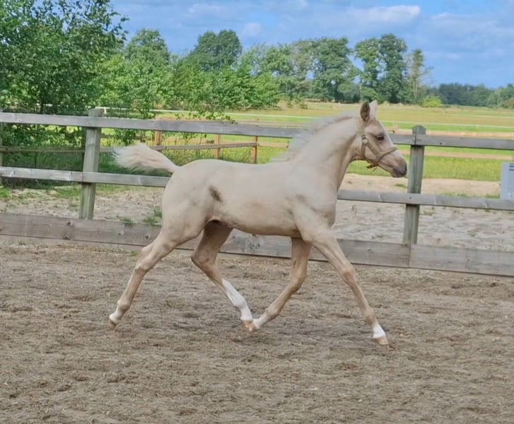 Sweet and affectionate foal with three good gaits. Loves attention and grooming. Is handled daily and walks nicely on a lead rope. Also accustomed to having its hooves picked out daily. Older full siblings are nice, reliable, and well-mannered all-rounders, who move well, learn quickly, and enjoy working together. In short, the ideal pony for a slightly older child, teenager, but also for a young adult.