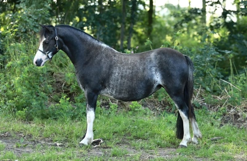 À vendre Magnifique jument Welsh A sabino noire, Glittering Gem Gem est très sociable, encore non dressée mais elle vient volontiers vers vous. Un poney très adorable. Gem est en bonne santé, sans défauts (ni physiques ni comportementaux). Obéissante au lavage et avec d’autres poneys. Pour des vidéos et plus d’informations, veuillez envoyer un message WhatsApp au 0636558148.