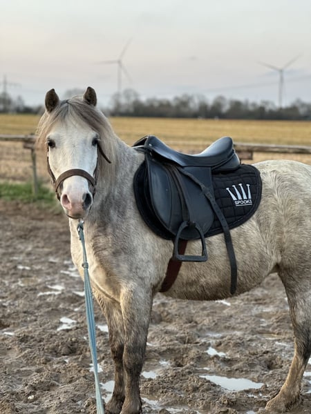 Challenge Glamour Felou ist eine 4-jährige Welsh A Stute mit einem Stockmaß von ca. 1,21m und sehr guter Qualität und Abstammung. Sie wurde bisher nur mit dem Sattel longiert und zeigt sich brav und entspannt dabei. In 2024 wurde sie auf der regionalen Keuring in Heteren mit einer 1. Prämie, dem 1. Platz sowie dem Titel Jugendchampion ausgezeichnet. Auf der Central Keuring Houten 2024 erreichte sie einen sehr guten 2. Platz. Auch 2025 bestätigte sie ihre Qualität erneut mit einer 1. Prämie und einem 3. Platz auf der regionalen Keuring Heeswijk Dinther sowie der Zulassung zur Central Keuring Houten. Sie hat zudem das Zuchtprädikat STER. Im Umgang ist sie brav und unkompliziert, lässt sich problemlos verladen und ist artig beim Schmied. Sie ist vollständig geimpft und regelmäßig beim Schmied gewesen. Das longieren hat sie bereits kennengelernt und wird nun dem Alter entsprechend, Schritt für Schritt ausgebildet (Reiterlich als auch im Fahren). Der Preis steigt daher bei weiterer Ausbildung. Weitere Fotos und Videos können gerne verschickt werden.