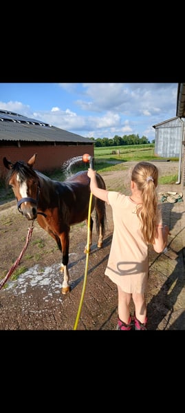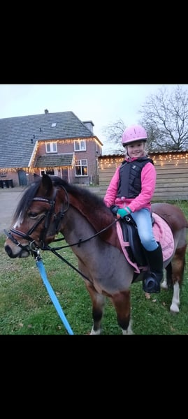 We hebben helaas moet besluiten om onze knappe Welsh a merrie te koop te zetten. Pony is beleerd onder het zadel, maar is te sensibel voor onze dochter. Op dit moment doen we voornamelijk buitenritten. Groot verkeer is nog spannend. Los rijden is nog geen optie. Ze is dus ook niet geschikt voor een beginnende ruiter. In omgang is het een brave pony en door kinderen goed te hanteren. Vorig jaar de merrie bij de keuring in Heteren stamboek geregistreerd. In 2024 heeft ze een veulen gehad (staat ook te koop) en blijkt ze een goede, fijne moeder te zijn. De pony is volledig gevaccineerd en wordt netje bijgehouden door de hoefsmid. Afgelopen zomer had ze wat last van de knutten. Met deken is dit goed op te lossen. Het gaat ons behoorlijk aan het hart, maar soms moet je keuzes maken. Een goed huis is voor ons ook zeer belangrijk.