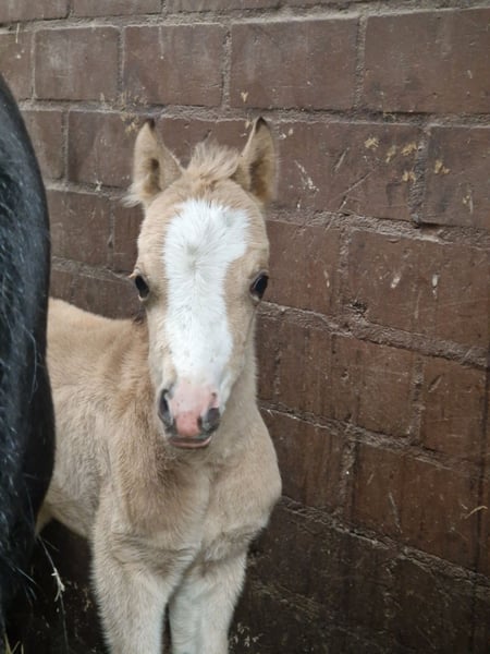 Schweren Herzens verkleinere ich meinen Pferdebestand wegen eigenem Nachwuchs erheblich und gebe in dem Zuge auch dieses wunderschöne neugeborene Fohlen ab: Rosentals H…… (hier darf sich noch ausgetobt werden, wenn es schnell geht!!) ist wirklich so unheimlich süß, dass einem glatt die Worte fehlen. In begehrter Buckskin Farbe (Braun Isabell) mit sehr viel Weiß und sogar noch ein paar weißen Tupfern neben ihrer breiten Blesse ist sie definitiv ein kleiner Hingucker! Noch ist sie leider sehr schüchtern aber, da meine Ponys in meiner Kinderreitschule stehen, wird sich dieser Umstand sicher ganz bald legen! H bekommt volles Mecklenburgisches Papier für Welsh A. Ihr Vater ist aktuell noch HB2 da wir es aus Zeitgründen noch nicht zur HLP geschafft haben. Er ist aber dieses Jahr zur Vorbereitung angemeldet und wir sind sicher, er wird sich dort - wie überall - von seiner besten Seite präsentieren. H kann im Alter von 6 Monaten von der Mama abgesetzt erworben werden oder schweren Herzens aber sehr gern auch zeitnah mit der Mama gemeinsam in ihr neues zu Hause ziehen. Bilder von ihr zeigen sie Tag der Geburt und 2 Tage alt