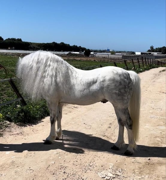 This little beauty captivates everyone who sees him. He is incredibly handsome and enjoys pulling a carriage. As he has been used as a breeding stallion, the little guy knows he's a stallion. However, due to his very gentle nature, he would undoubtedly make a well-balanced dream pony after castration. He has not been ridden but can perform some show movements, such as the levade. A small cosmetic flaw: his magnificent neck crest is slightly tilted. Who is looking for such a little superstar?