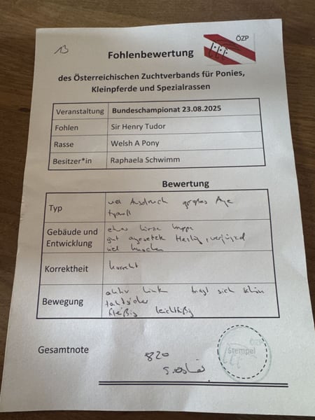 Sir Henry Tudor è un puledro molto tipico di Welsh A, che ha convinto anche i giudici al Bundeschampionat! È un giovane robusto e molto promettente! Per ulteriori informazioni, contattami pure su WhatsApp.
