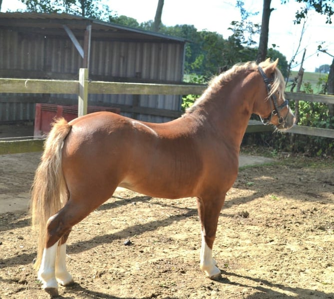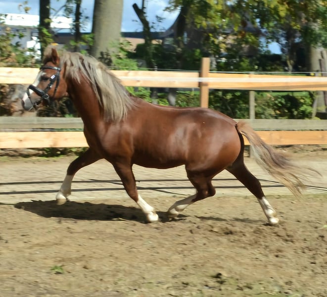 Aus eigener Zucht angeboten wegen Überbestand 4-jähriger Welsh-A Ponyhengst Munbus Monty (v. Blanche Mastermind) Monty misst +/- 1,17 m und hat eine echte Hengstausstrahlung. Er kann fantastisch gut bewegen. Er besitzt eine Decklizenz des NWPCS. Anfang August 2025 wurde er veterinärmedizinisch genehmigt (Beinstand, Herz, Augen, Traben auf hartem Boden etc.). Monty läuft problemlos in den Anhänger, ist mit Waschen/Abspülen vertraut und hat offensichtlich Freude an der Arbeit. Er ist sehr wachsam und aufmerksam, aber auch neugierig und anhänglich. Wir haben ihn bisher +/- 5-6 Mal unter dem Sattel gehabt. Er nimmt dies super gut an. Wir haben Schritt, Trab und Galopp an der Longe gemacht. Er hat eine vorwärts gerichtete Einstellung und läuft leicht durch. Er hat letzten Sommer im Stall manchmal etwas gescheuert, aber ich glaube nicht, dass er Ekzeme hat. Er war zu diesem Zeitpunkt zu schwer und bekam zu wenig Bewegung. Jetzt verliert er Gewicht und ich sehe ihn nicht mehr scheuern. In den Jahren zuvor hat er auch nie gescheuert! Wir haben ihn tagsüber draußen (neben den Wallachen klappt gut!) und nachts im Stall. In seiner Jugend stand er 24/7 draußen. In Absprache kann Monty vor dem Verkauf kastriert werden. Wir übernehmen dann die Hälfte der Gesamtkastrationskosten (ca. +/- 350 €). Videos sind über WhatsApp verfügbar (+31 (0) 6 57546458). Besichtigung in Gendt, Gelderland.