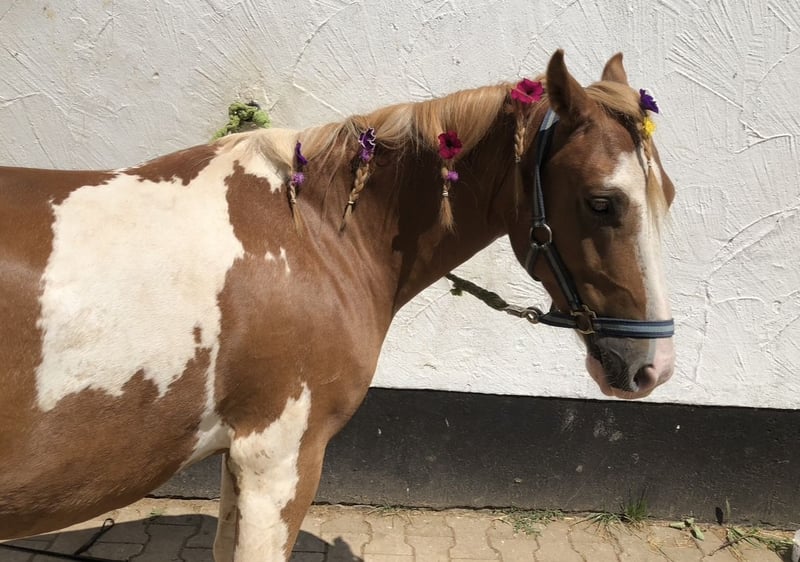Wir suchen ein neues zu Hause für unseren Whisper. Der kleine Schecke hat ein Stockmaß von ca 1,30 (geschätzt) und ist von kräftiger Statur, weshalb er auch größere Reiter sehr gut abdeckt. Whisper hat im April 2015 bei uns das Licht der Welt erblickt. Seine Mutter war eine Welsh-A Stute. Vater leider unbekannt. Er ist artgerecht im herdenverband aufgewachsen und lebt aktuell in einer gemischten Herde im Offenstall. Kennt aber auch Box mit täglich Weidegang. Er ist seit 2022 unterm Sattel und wurde seither hin und wieder bei uns in der Reitschule eingesetzt. Da er sehr sensibel ist und mit ständigem Wechsel nicht so gut zurecht kommt, wird er ausschließlich in private Hände verkauft. Da wir zur Zeit keinen passenden Reiter haben, wurde er länger nicht mehr geritten und muss wieder antrainiert werden. Das Pony macht einen tollen Sprung, wurde jedoch hier nicht weiter darin gefördert. Nicht für reine Anfänger geeignet. Er wurde wegen Stallwechsel bereits 2 mal im Hänger gefahren. Geht jedoch nicht gerne rein. Dies müsste mit viel Ruhe geübt werden. Das Pony bringt einen angepassten Dressursattel sowie Trense mit ins neue Heim. Kein Notverkauf. Anfragen ohne Namen oder mit fragen wie : was ist der letzte Preis werden nicht beantwortet.