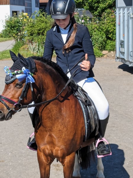 Wir verkaufen schweren Herzen unseren Bildhübschen Welsh A Wallach Pedro. Wer die Nadel im Ponyheuhaufen sucht wird bei Pedro fündig. Pedro ist seit dem absetzen in meinem Besitz und wurde mit 4 Jahren langsam und schonend ausgebildet. Seither hat er auch nie nur einen falschen Schritt gemacht. Pedro ist das Pony meiner 13 jährigen Tochter die mittlerweile viel zu groß für ihn ist, das Pony begleitet sie nun schon fast ihr ganzes Leben weshalb der Verkauf sehr schwer fällt und ganz klar eine Entscheidung pro Pony ist, da er unheimlich gerne im Mittelpunkt steht und gefordert wird. Im Moment hat Pedro eine 9 Jährige Reitbeteiligung die ihn alleine von der Koppel holt und fertig macht. Der hübsche Wallach im Großpferdelook läßt seine Reiter auf jedem Turnier strahlen und kommt nie ohne Schleife nach Hause ,so konnte sich auch seine kleine Reiterin promt in der Führzügelklasse den 3. Platz schnappen. Er gibt für seine kleinen Reiter alles, ist easy an den Zügel zu reiten auch für die kleinsten. Egal ob mit oder ohne Ausbinder, Gelände , Halle , fremde Plätze auf Turnier oder zu Hause . Pedro wurde Anfang des Jahres professionell eingefahren und konnte auch dort sofort punkten . Da die Idee war ihn als Fahrpony für mich zu behalten ,leider muss ich mir eingestehen das fahren nichts für mich ist ,und ich ihm dann da noch nicht die nötige Sicherheit bieten kann. Trotzdem kann man ihn sofort anspannen und losfahren. Ein Pony was rundherum Spaß macht. Auch Mountain Games ,Ponyspiele, Leonhardieritte alleine oder in der Gruppe ins Gelände alles kein Problem. Wir suchen für unseren Pedro nur das beste Zuhause, wo er Kinderherzen und evtl.sogar Fahrerherzen zum strahlen bringen kann. Pedro darf mit seinem über 11 Jahre angesammelten Zubehör ausziehen. Bitte nur ernstgemeinte Anfragen. Pedro war in 12 Jahren nicht einen Tag krank und hat keinerlei Unarten. Im Sommer neigt er zu schubbern hat aber immer volle Mähne und Schweif und bekommt bei Bedarf eine Fliegendecke drauf. Er steht bei uns Nachts in einer Box und Tagsüber auf der Koppel mit seinen Ponyfreunden, eine ähnliche Haltung würden wir uns für ihn wünschen ,er ist sehr sozial, verträglich und verspielt.