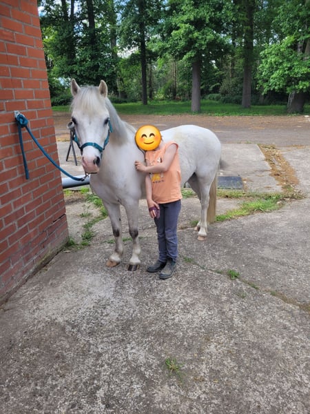 Schweren Herzens haben wir uns entschieden unseren 13-jährigen Welsh-A Wallach Togolino zu verkaufen. Er ist 120 cm groß und war für meine 7-jährige Tochter gedacht, aber leider ist das Interesse einfach nicht groß genug, so dass wir ein tolles neues Zuhause für ihn suchen, in dem er wieder mehr Ansprache erfährt und noch ein Kind glücklich machen kann. Togolino lässt sich brav von Kindern führen, reiten und putzen. Meine Tochter hat ihn hauptsächlich geführt im Gelände und auf dem Platz an der Longe geritten. Dabei ist er sehr brav und hat ein eher gemütliches Tempo, selbst wenn er länger nicht bewegt wurde. Er beißt nicht, tritt nicht, buckelt nicht und ist sehr verträglich mit anderen Pferden. Zu beachten ist, dass Togolino ein eher zurückhaltendes und ängstliches Wesen hat. Er braucht Zeit, sich an neue Menschen und neue Dinge zu gewöhnen. Er braucht feste Bezugspersonen und wird auf keinen Fall an eine Reitschule verkauft. Im Moment lebt er im Offenstall in einer Wallachherde, er kennt aber auch Boxenhaltung mit Weidegang. Togolino läuft barhuf, ist geimpft und wird nach Beprobung entwurmt (laut letzter Untersuchung ist er wurmfrei). Die Zähne sind gerade noch gemacht worden. Er war hier immer gesund. Er koppt zwar, aber das bereitet ihm keine Probleme. Die gesamte Ausrüstung wird kostenlos mit abgegeben, da unser weiteres Pony zu groß dafür ist. Insgesamt gilt: PLATZ vor PREIS Bitte nur ernstgemeinte Anfragen, gerne auch über WhatsApp oder telefonisch: 0173 9447804. Bei Interesse können auch Videos verschickt werden.