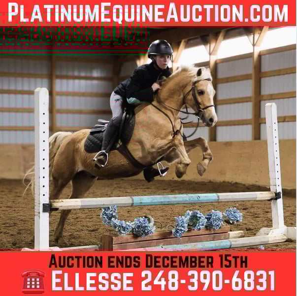 ONLINE AUCTION Place your bids at www.PlatinumEquineAuction.com Starting Bid $3500 Auction ends December 15th, 2024 Need a new saddle? Check out White Rock Saddles on our website or Facebook! Meet Biscuit or registered as “Wheels On The Bus” as we call him around the farm. This golden palomino gelding stands 13.1hh at 11 years old. He has a beautiful blonde mane and tail and the most darling face you will see. He is a grade welsh who is registered with the USEF. Biscuit has 3 nice gaits, a quiet walk, floaty flat kneed trot and a great canter. He has flying changes when asked. He has a nice uphill build making him the perfect mount for the little ones. Biscuit has been ridden both English and western by adults and kids alike. He holds his gaits easily and moves forward off of a cluck. Biscuit has worked summer camp teaching flat work and pole piles to beginners. He has also been jumped 2ft 3 and jumps in great form. He has been shown in hunter shows. Biscuits abilities shine past the arena as this boy loves the trails, deep woods, water, deer no problem. He’s a drop the reins and enjoy the scenes kind of guy. He has also dabbled in some barrel racing, poles and flags! He is super game for all of it. Biscuit has proven him self to be a fantastic teacher and versatile pony. Biscuit lives in Howell MI 48855. Enjoy the video and give me a call or text at 248-390-6831 to meet him. Boarding is available until Christmas if you would like to get this guy under the tree! ONLINE AUCTION Place your bids at www.PlatinumEquineAuction.com Starting Bid $3500 Auction ends December 15th, 2024 Need a new saddle? Check out White Rock Saddles on our website or Facebook!