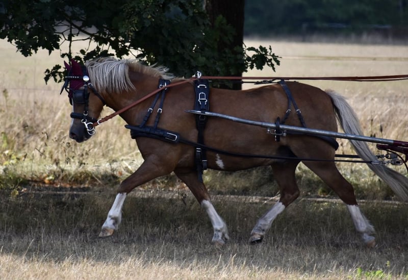 Wenn wirklich alles passt, würde ich mich von meinem zuverlässigen Fahrpony trennen. Er ist eine absolute Versicherung im Gelände, auch bei Treckern, plötzlichen Radfahrern, Hunden etc. bleibt er cool. Leider haben wir hier kaum Strecke zum Fahren, so dass ich seit fast 2 Jahren kaum mehr angespannt habe. Auch nach längerem Nicht-Fahren ist er völlig unproblematisch , nur eben nicht besonders fit. Goldi ist KEIN Kinderpony, er hasst Kinder auf seinem Rücken und setzt sie sofort wieder ab. Auch beim Führen ist er zu Kindern respektlos, bei Erwachsenen immer super. Er ist freundlich und verspielt mit anderen Ponys, läuft in einer gemischten Ponyherde mit etwas Weidegang und ausreichend Heulage. Im Winter kennt er Paddockbox, Offenstall wäre auch gut, da er leichtes Asthma hat und daher staubarm stehen sollte. Er schlägt und beisst nicht, steht brav beim Putzen und ist einfach ein Schatz. Keine Rehe, kein Ekzem ! Ein Probefahren ist derzeit schwierig. Der Preis ist inkl. Geschirr und Marathonwagen