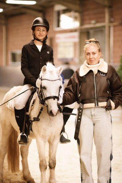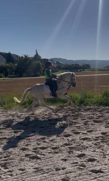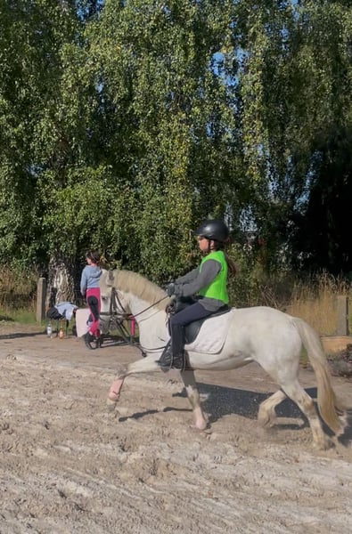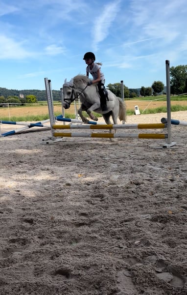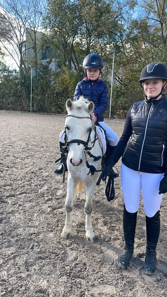 Sir Henry is a charming young grey gelding in a manageable pony size (approximately 115 cm), who has already won the hearts of children in daily riding lessons. He reliably moves in the arena, on the training ground, and in the field at walk, trot, and canter – always well-behaved, steady, and with joy in his work. Spectators, music, or applause do not disturb his composure. He also behaves impeccably and calmly during vet visits, farrier work, and loading. Although still young, he impresses with his honest, balanced, and eager-to-learn nature. The youngest children may initially need some support, but Sir Henry is never malicious, has never bucked, and is always dependable. If he gets startled, he trots briefly but quickly regains his calm. On the longe line, he confidently and obediently walks all three basic gaits with children. His gaits are rhythmical, comfortable, and easy to sit, and under saddle, he also shows cooperation – both with and without an instructor. Sir Henry is already jumping small courses; he is switch-safe, brave, and very rideable. At his first competition, he demonstrated fearlessness and composure: 🏅 Winner of the lead-rein class 🏅 Placed in the rider class Additionally, Sir Henry is easy to care for and uncomplicated in feeding – simply a friendly, healthy young pony that brings daily joy to his humans. ✨ If you are looking for a promising, reliable, and honest competition pony for 2026, Sir Henry is the perfect choice! NO DEALERS