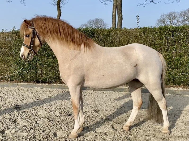 Deze welsh a pony is echt een prachtverschijning. In de omgang is het een heel lieve en eerlijke pony, aandacht en "spelen" vindt hij heel leuk. Ook braaf op de wasplaats, bijt en slaat absoluut niet en is zonder problemen te scheren. Grond en longe werk kent hij inmiddels goed en doet dit goed. Hij kijk niet op hindernissen en stapt of springt overal overheen. Hij is alleen nog niet bevestigd zadelmak. Er heeft af en toe een jong kindje opgezeten, maar dan is hij wel eerst gelongeerd en houden wel hem vast. Voor een kind moet hij dus wel eerst nog aangereden worden.