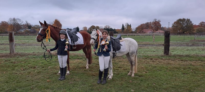 Wir verkaufen unseren kinderlieben, bildhübschen Mucki, 7j., 128 cm, da meine Tochter zu gross ist und sie jetzt schon die Endmassponys reitet. Meine Tochter reitet Mucki auf einem sicheren WBO /Anfang E Niveau. Mucki durfte schon an zahlreichen Turnieren teilnehmen, wo er fast immer siegreich oder platziert war. Er geht brav in der Abteilung, egal an welcher Stelle, läuft brav an der Longe mit Anfängern und kennt auch mit Ausbindern geritten zu werden. Mucki springt einen Parcour auf WBO Basis, was ihm viel Spass bereitet. Dabei zeigt er Vermögen und Übersicht. Man kann auch mit Mucki ausreiten. Er kennt es auch mit den kleinsten Reitanfängern am Fahrrad mit zu laufen. Er ist den Kindern durch seine freundliche Art stets zugewandt. Die Kinder können alleine mit ihm umgehen. Sie können ihn putzen, verladen, waschen, longieren usw, ohne das ein Erwachsener mit dabei sein muss. Dabei achtet er auch auf die jüngsten Reitanfänger. Wir wünschen ihm eine tolle Familie, die ihn genauso schätzt und lieb hat. Mucki war bei uns noch nie krank. Er wird in sein neues Zuhause mit einer gültigen kl. Aku abgegen. Gerne verschicken wir weitere Videos 015236768283 nur über WhatsApp Vielen Dank