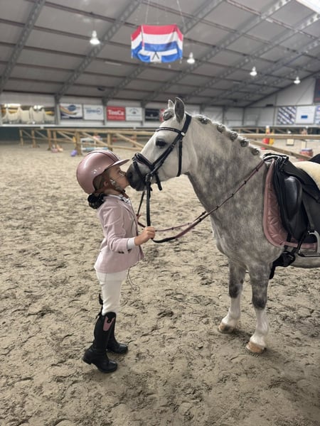 Are you looking for a stunning, safe and talented pony for your child? Meet Ambassador a beautiful 8 years old grey gelding (1.23m) with a heart of gold. He is highly experienced in the ring, many first places! • Dressage: Competing at L1 level (ready for L2) and a two time Reserve Champion. • Jumping: Recently placed 2nd at the Indoor Beukers competition. • Driving: He is well trained for both single and double harness. The ideal pony for beginners and for the ambitious young rider. Ambassador is an honest, hardworking and reliable partner truly a “friend for life” for any young equestrian. For further information, please contact us via private message or at +31 6 36591918