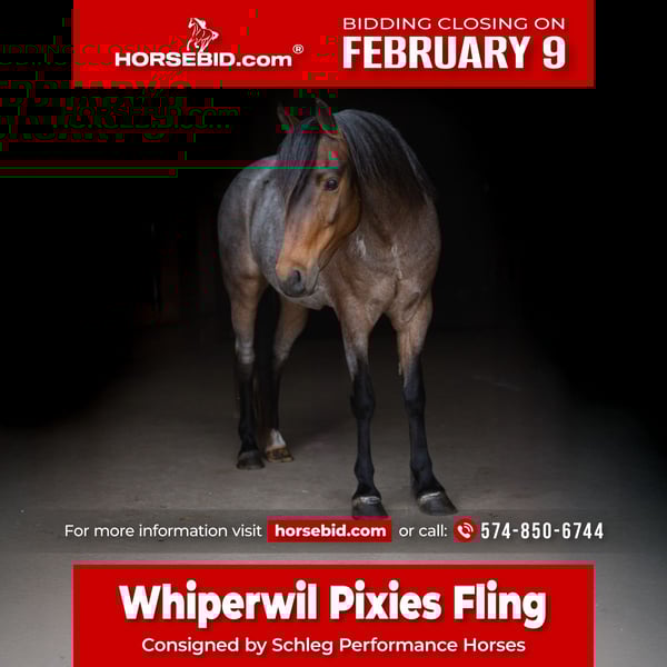 ❤️🔥𝑩𝒆 𝑴𝒊𝒏𝒆 𝐒𝐄𝐋𝐄𝐂𝐓❤️🔥 Happening now thru MONDAY | FEBRUARY 9th - Available EXCLUSIVELY on HorseBid's website! For more details and to register visit: www.Horsebid.com CONSIGNOR CONTACT: Schleg Performance Horses 574-850-6744 LOCATION: North Judson, IN BREED: Welsh Pony REGISTERED: Yes REGISTERED NAME: WHIPERWIL PIXIES FLING COLOR: Bay Roan HEIGHT: 12 AGE: 9 GENDER: Gelding Blue is the total package! At 48” y’all, this 2017 gelding is of the perfect size and demeanor for your kids! He is well seasoned in English riding and jumping and his smooth trot and lope make him an absolute dream for a kid to get find their seat! Not only is he good for hacking, this pony was used all summer at Junior Rodeo in poles, barrels, flags, and dummy sled roping! My 10 year old son rode him the most during the summer but all of my children have enjoyed him immensely while trail riding! He is a very experienced trail horse and he has been easy for my kids to navigate logs, ditches, hills, and creeks without our help on Blue! He is easy to tack, bath, trim, lead, load, and stands tied well! Blue is %100 sound with no blemishes or scars. He’s truly the pony we all wish we had when we were growing up! If you’d like to come check him out, please contact me at 5748506744 and let’s set it up!