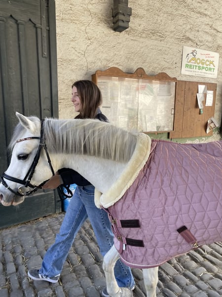Elina ist eine außergewöhnlich hübsche Stute mit holländischer Abstammung mit siegreichen Eltern und eigenen Siegen im Zucht-Verband. Elina ist eine liebenswerte, hübsche Stute, die sich auch für kleinere Turnierauftritte eignet. Sie ist schon Reiterwettbewerb, E Dressur gegangen und wurde von Kindern freizeitmässig gesprungen. Für Elina stellen wir uns eine liebe und kümmernde Familie vor, wo sie exklusiv gepflegt und geliebt und geritten wird und einen lebenslangen Platz erhält. Führzügelwettbewerbe hat sie mit Bravour gemeistert und ein wunderschönes Bild abgegeben. Elina hatte vor 2-3 Jahren aufgrund ihrer Feinfühligkeit von den Hufen eine Rehe, welche mit dem richtigen Beschlag nicht mehr aufgetaucht ist. Elina läuft seit zwei Jahren ohne Einschränkungen im Unterricht mit und hat daher bewiesen, dass sie ein zuverlässiges, reitbares und gesundes Pony ist: