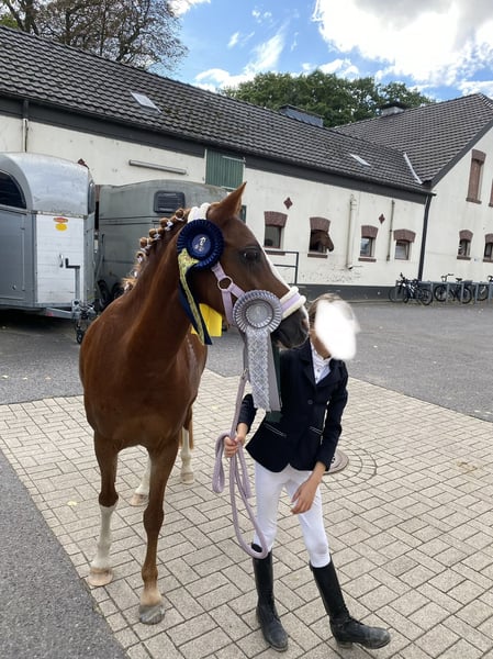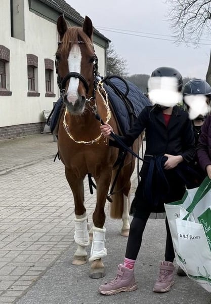 Schweren Herzens abzugeben: Welsh B Stute Sunny 15 Jahre alt Stockmaß: 1,36m Geburtsdatum: 20.04.2011 Farbe: Fuchs Unsere liebevolle und kinderfreundliche Ponystute sucht ein neues Zuhause mit viel Liebe. Sunny ist ein soziales Pony, dass sich in ihrer Stuten Herde wohlfühlt. Sie ist hier eher rangniedrig. Sie ist ein vielseitiger Allrounder mit Erfahrung in: Dressur Springen Voltigieren Bodenarbeit Gebisslos reiten Ausreiten Sie war vor drei Jahren auch noch erfolgreich im Fahrsport unterwegs. Bisher hat sie Erfahrung in der Dressur mit Kindern bei kleinen WBO Turnieren in der Führzügelklasse und E-Dressur sammeln können. Sunny geht auch allein ins Gelände und ist hier brav und nervenstark. Man kann jeden Quatsch mit ihr machen. Sie ist ein Verlasspony! Sunny ist super Kinderfreundlich (von 3-15 jährigen Kindern geritten) Sunny hat keine Unarten und auch bocken ist ihr fremd. Sie läuft Barhuf. Sunny lässt sich easy verladen (auch von Kindern), ist lieb beim Tierarzt( z.B. impfen) und ist Schmiedefromm. Sunny ist vollständig geimpft und entwurmt, sie ist regelmäßig beim Schmied und einmal jährlich beim Zahnarzt. Derzeit lebt unser Pony abends/nachts in einer Box und tagsüber auf dem Paddock/Weide. Eine artgerechte Haltung mit täglichem Auslauf ist uns sehr wichtig. Wir wünschen uns, dass Sunny in ein liebevolles Zuhause mit Familienanschluss kommt. Auch für die Zucht wäre sie interessant. Bei Fragen gerne melden. Kontakt gerne über das Kontakformular oder Whats App