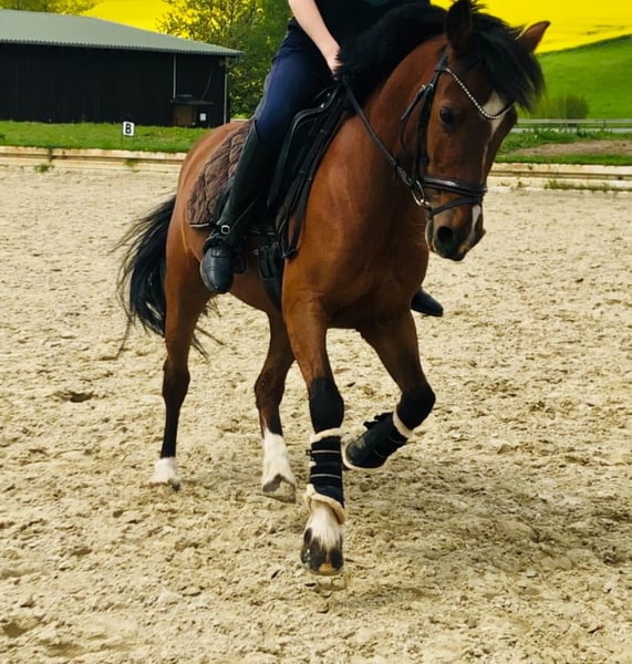 Unsere wunderschöne 16 jährige, 1,36m große Stute ist ein zuverlässiges Kinderpony. Ob im Gelände, im See oder auf dem Turnier. Sie ist mit und ohne Ausbinder problemlos zu reiten. Diese tolle Stute hat unsere Tochter von den ersten Schritt Trab Prüfungen bis hin zur E Dressur und E Springen getragen. Sie kennt Auswärtstraining und verladen und ist dabei immer zuverlässig und absolut artig. Sie bringt Kinderaugen zum Strahlen und deshalb haben wir uns entschieden, dass sie noch ein Kind so glücklich machen darf wie unsere Tochter. Mit einem Herz aus Gold tut sie alles für ihren Reiter. Sie ist seit 9 Jahren in unserem Besitz und war noch nie krank. Die Stute ist vorne Beschlagen und ist beim Hufschmied natürlich auch super brav. Das Zubehör kann bei Bedarf mit erworben werden. Wir haben einen Jugend Dressur- und Springsattel für die Stute. Nur in allerbeste Hände abzugeben. Sie steht bei uns in Stutengesellschaft täglich auf der Wiese. Täglicher Weidegang ist für uns eine Bedingung. Sie ist bestens geeignet für den Einsatz im Sport- und Freizeitbereich. Bei Interesse stehe ich Ihnen gerne für weitere Informationen und eine Besichtigung zur Verfügung.