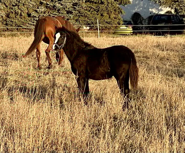 A typical Welsh B filly born on May 11, 2025, is now available for sale. She impresses with her elegant conformation, a balanced and personable character, and elastic basic gaits. "Jumanji" already masters the foal's ABC and has always been curious and eager to learn. She is currently growing up in an open stable with mares aged 5 to 17 years. She is healthy, correctly built, and already familiar with dogs, tractors, and road traffic. Her final height is expected to be around 134 cm. This makes her an excellent future sport, show, or family pony, and her clear mind and joy of movement provide the best prerequisites for a harmonious and successful training. Both parents are ridden and driven and have proven to be very uncomplicated in those disciplines. She is registered with the Neustadt Verband, and her passport is currently being issued. She is now ready to move into a new home. We are looking for an experienced, horse-minded owner who cares for her well! Later on, she will likely also make a wonderful children's pony. Her sire is Frankenhoeh's Merlin (https://www.rimondo.com/de/horse-details/159028/frankenhoehs-merlin). Directly from the breeder, €2000 negotiable. If interested, please send a message here. Jumanji can be viewed by appointment.