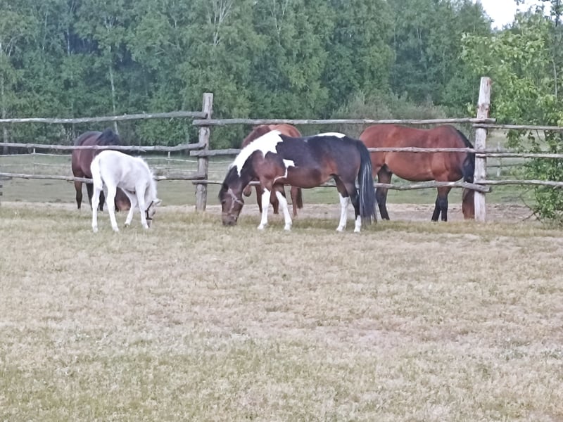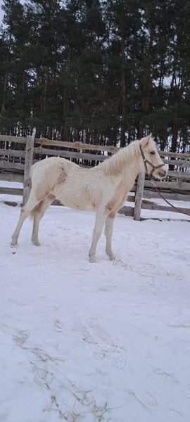 Tout comme sa robe d'origine palomino pie (confirmée par les tests génétiques homozygote au Locus E - génotype T/T(e/e), hétérozygote au Locus C génotype A/G( Cr/N)). Elle a un caractère fort et une sensibilité au contact de l'humain. Dès sa naissance, elle a été élevée en liberté, ce qui garantit à l'avenir une bonne musculature, idéale pour le sport. La jument est vaccinée, vermifugée selon le calendrier, sous les soins constants du maréchal-ferrant. Passeport AES. Taille estimée 130-135 cm. Née le 25.03.2025 Par Ares welsh pony ( Wolling’s Dante welsh – Apasjonata Dumka welsh/ Kienbergs Doro welsh) Norwegian Wood ( Nando Super - Bisia) Sa mère a fait des preuves dans le sport en saut d'obstacles, avec une taille de 130 cm, des concours documentés jusqu'à 100 cm. Je fournis le document TRACE nécessaire pour le transport international. No tel. /WhatsApp + 33 660836193, FR,EN, PL No tel./WhatsApp + 48 883992001, FR,EN,PL