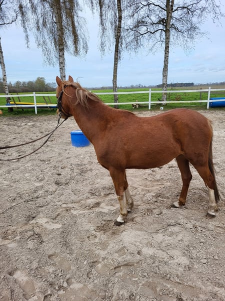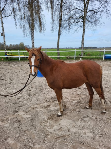 Super brave Welsh Stute zu verkaufen. Rhossyn van Bombaij (Rosi) ist ein aufgewecktes, neugieriges und arbeitswilliges Pony. Sie ist ca. 134 cm groß. Rosi ist anlongiert, und kennt Reitergewicht im Schritt. Außerdem hat sie auch schon am langen Zügel einen Reifen gezogen. Ich kann mir Rosi sowohl als Reitpony als auch vor der Kutsche gut vorstellen. Rosi ist unerschrocken und absolut klar im Kopf. Sie kennt, Hunde, Trecker und ist gut herdenverträglich. Sie kennt Spazierengehen auch alleine. (geht also auch gut von der Herde weg) Sie ist menschenbezogen, aber nicht auf bestimmte Personen fixiert. Rosi hat gute Papiere und wäre auch für die Zucht gut geeignet. Vater = Byley Aragron Vater/Vater = Hilin Tattoo Mutter/Vater = Wheemhoeve´s Marko Wir haben Rosi vor vier Jahren als Beisteller für ein eigenes Fohlen in Holland gekauft. Jetzt haben wir leider keine Aufgabe für Rosi und sie ist bereit für weitere Lektionen. Deshalb geben wir sie jetzt ab. Wir wünschen uns für Rosi ein super neues zu Hause mit neuen Aufgaben (reiten, fahren...?) oder jemanden der mit ihr züchten möchte. Platz vor Preis! (aber verschenkt wird sie nicht!! ;-) ) kein Notverkauf! Bei Interesse gerne melden, dann kann ich auch noch mit Videos dienen. Gruß Hartmut Hölter 0162-3630036