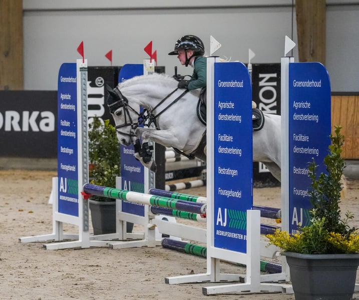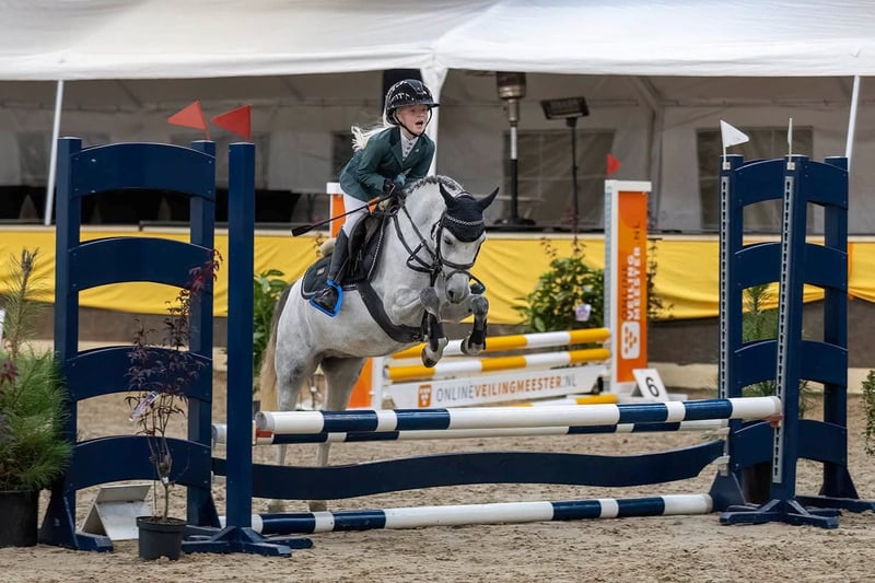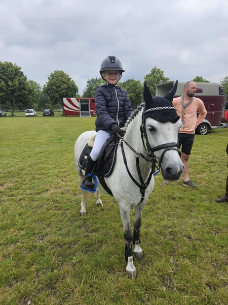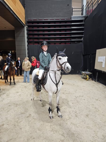Our Didi is a pony you would never want to be without. She has given our daughter confidence, countless ribbons, and above all, a lot of fun. She was completely trained by our daughter herself, who was only 7 years old at the time. Easy and uncomplicated to ride. She goes around the course in a steady rhythm on a simple bit, but can also be ridden more energetically and quickly with tight turns if desired. She goes on weekly trail rides. Traffic and riding through the forest are no problem at all. Playing together, climbing, and having fun—everything is possible! She is super fit and has never had any issues. We would love to see her go to an enthusiastic young rider who will enjoy her just as much as we have. Didi is a joy not only for a child, but also for parents, who can watch with peace of mind. Many videos available. Price on request. For serious interest, please call: +31 6 22460569