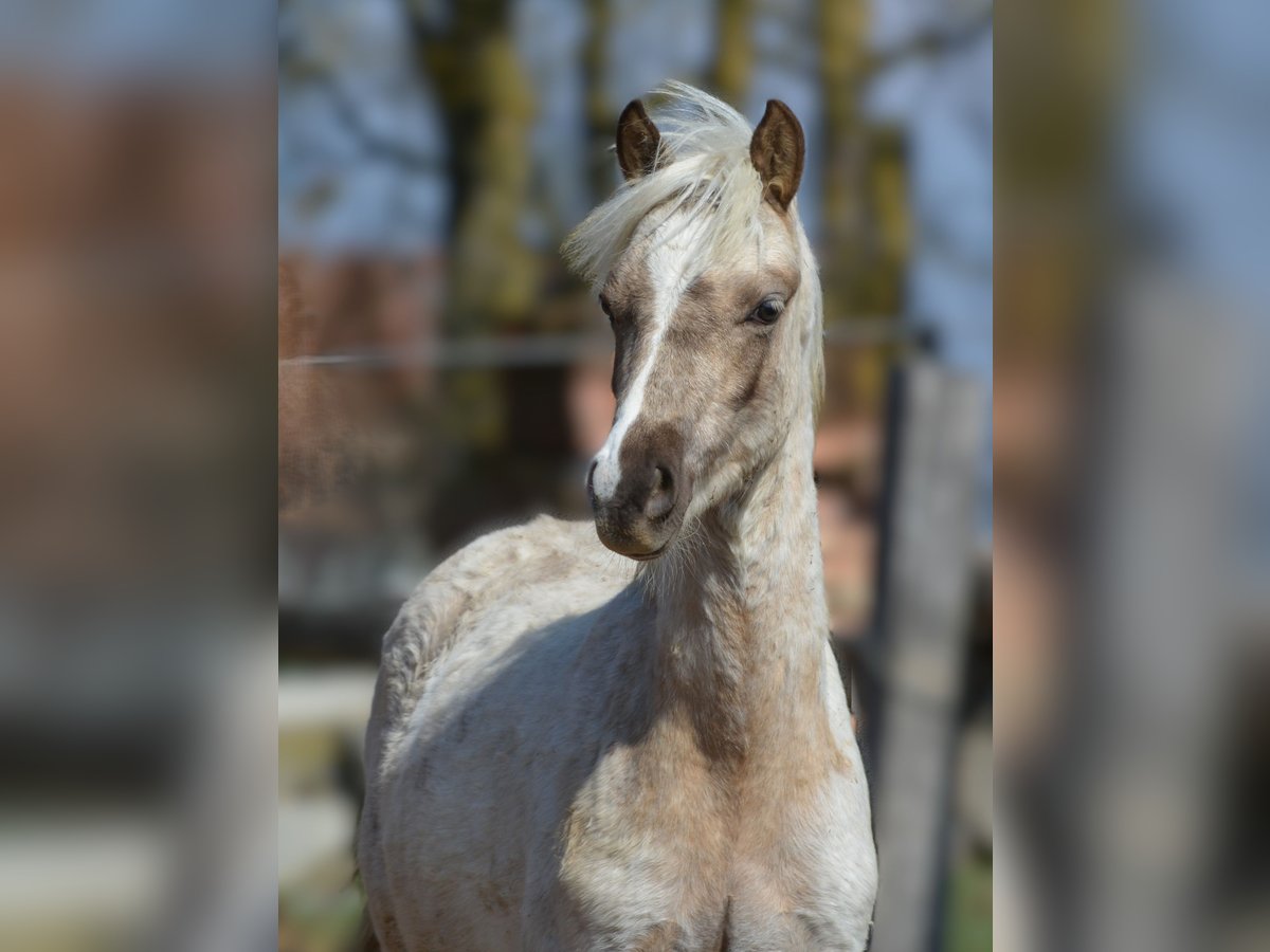 Kienbergs Chester C is a very typy Welsh B colt in the dream color Palomino Roan. Due to unreliable buyers, this spirited little gem is now looking for a new home. Both parents are ridden, well-built, and very tall (mother approximately 1.35 m, sire licensed and over 1.40 m), and they come from our breeding program. Chester is age-appropriately handled and is currently stabled with a colorful red dun foal by Cadlanvalley Deluxe x Breeton Toy, who is also seeking a new home. Both boys were awarded premium as foals, are truly beautiful, and look forward to welcoming pony-loving visitors.
