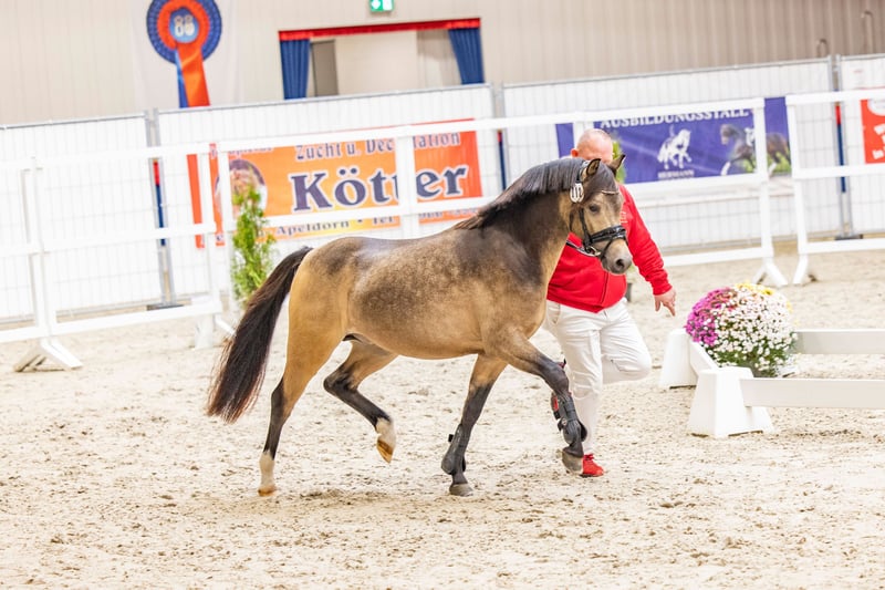 Verkaufe meinen gekörten Welsh B Hengst Heart of Heaven C.S (15.04.2023). Er ist ca. 128 cm groß, zeigt einen sehr lieben, menschenbezogenen Charakter und ist für beide Sektionen zugelassen. ➤ Daten: • Gekörter Welsh Pony Hengst • Sektion B – für beide Sektionen zugelassen • Farbe: Braunsilbe (Buckskin) • Chip & Papiere vorhanden • Standort: 27801 Neerstedt ➤ Abstammung: Mutter: Nilanthshoeve’s Anthé – leistungsstarke und typvolle Linie über Cadlanvalley Goldstar & Eyarth Harlequin. Vater: Halifax – Elitehengst, HLP-Sieger, viele erfolgreiche Nachkommen in Sport & Zucht. ➤ Das macht ihn besonders: ✔ Bereits gekört ✔ Zugelassen für beide Sektionen ✔ Sehr lieber, anhänglicher Charakter ✔ Bewegungsstark & typvoll ✔ Hochwertige Abstammung – ideal für Zucht & Sport