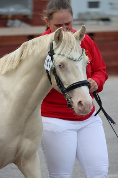 Renaissance Croissant Royale Welsh B 10.03.2023 123 cm aktuell EM ca 130 cm Rappweißisabell, smoky cream Vater: Carrwood Tom Ellis Mutter: Renaissance Cheikha Mozah Muttervater: Tijd Vlijts Black Berry Regelmäßig ausgeschnitten, entwurmt und geimpft Unsere kleine Farbsensation sucht 5* Zuhause Getestet Rappweißisabell bzw smoky cream (aaEe CRCR) ist Crossie etwas ganz besonderes! Grundfarbe Rappe in doppelt aufgehellt brächte er immer zu 100 % aufgehellte Fohlen. Smoky Black, Palomino una Buckskin abhängig der Stute. Aber nicht nur das macht ihn besonders, denn für ein so junges Pony ist er unheimlich brav. Typisch Welsh hat er eine Lieblings-Bezugsperson, aber auch mit jedem anderen ist er brav im Umgang. Egal ob als zukünftiger Hengst, Fahr- oder Reitpony wird er viel Freude bereiten. Er ist nie aggressiv oder böse, beißt und Tritt nicht, ist brav bei Tierarzt und Schmied, lässt sich verladen und steht gut auf dem Hänger. Neugierig und freundlich ist er einer der Lieblinge bei uns im Stall. Er wurde auf dem belgischen Erfolgsgestüt Renaissance geboren, wo auch seine Mutter schon gezogen worden ist. Sein Vater stammt aus England und hat bereits in den Niederlanden, Tschechien und Belgien züchterisch gewirkt. Im Letzten Jahr wurde der Vater als Deckhengst nach Brasilien exportiert. Außerdem ist er ein braves Kinderreitpony, neben seiner Zuchtkarriere. Crossie hat einen überragenden Trab, einen für Welsh eher untypisch sehr guten Schritt und einen guten Galopp. Bis August hat er rundum das Jahr mit Hengsten und Wallachen jeden Alters und Größe zusammen im Offenstall in der Herde gestanden und ist völlig unproblematisch in der Gruppe. 24/7 Heu, im Sommer zusätzlich Wiese, Mineral zur freien Verfügung und befestigem Trail. Wir haben ihn dem Alter entsprechend langsam ins Training genommen. Inzwischen kennt er Freilauf, Longe, Trense, Gurt, Sattel, Schweifriemen und Stangenarbeit in allen Grundgangarten und lässt sich brav an der Hand mustern. Wäre sofort bereit um in die Kör-Saison zu starten! Kann aber auch zeitnah hier gelegt und weiter ausgebildet werden. Wir bieten sowohl das Einreiten, als auch das Einfahren an. Gerne darf er dafür auch im nächsten Jahr wiederkommen und den Winter über noch seine Jungend genießen. Kennt Trecker, Hunde und Kinder jeden Alters, ist aber aufgrund des Alters natürlich noch kein fertiges Kinderpony. Hat noch nicht gedeckt und auch kein Hengstgehabe. Crossie kann gerne nach Absprache kennengelernt werden. www.ponyzucht-kaiser.de