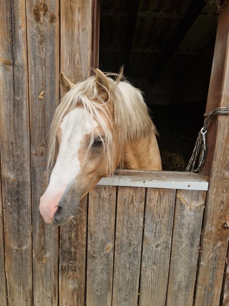 Il nostro splendido Dancer è arrivato da noi come puledro e è cresciuto in modo sano e robusto, circondato da altri giovani stalloni e stalloni da monta. È stato lavorato alla longe, conosce il salto libero, è abituato a passeggiate che lo rendono sicuro in strada e si mostra estremamente educato nel rapporto con le persone. Si trova nel box accanto a delle fattrici e, dalla stagione autunnale fino all'inverno, condivide il paddock con altri stalloni da monta e giovani stalloni. Alla longe, conosce già il peso del cavaliere e ha dimostrato fin dal primo tentativo di essere molto tranquillo e disponibile con questo compito. Dancer è stato convalidato nel 2025 dal Verband Mecklenburg-Vorpommern. Era destinato a essere impiegato principalmente nella nostra selezione di ponies da dressage, in particolare per coprire fattrici di taglia abbastanza grande a mano, ma questa mansione gli risultava difficile. I consigli di altri allevatori sono troppo rischiosi per noi, motivo per cui purtroppo è attualmente senza incarico. È rimasto incinta di una fattrice di circa 1,43 m e si è dimostrato molto gentile sia con la fattrice che durante il servizio di monta, sia a mano che con la femmina. Lo vendiamo a malincuore come stallone o, in alternativa, lo castriamo per poterlo addestrare come pony per bambini. Sono disponibili alcune foto, anche di quando era stallone giovane. L'immagine con le campane è la più recente: da allora ha preso un po' di peso e ora appare più robusto. Siamo disponibili a conoscerlo di persona, previo interesse serio.
