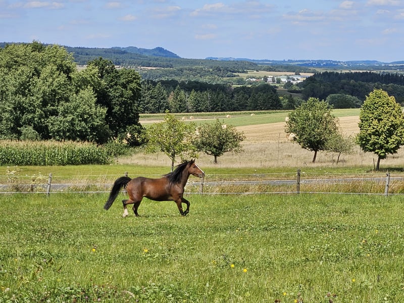 Wir möchten nach langem Übelegen unseren Levi verkaufen, vorausgesetzt wir finden ein geeignetes Zuhause! Es ist kein Notverkauf. Aber wir denken, dass wir ihm nicht das Zuhause bieten können, was er bräuchte. Levi ist ein 10-jähriges Welsh-Pony. Wir haben ihn vor knapp 2 Jahren aus einer (fast ausschließlichen) Boxenhaltung übernommen. Bei uns steht er 24/7 draußen im Offenstall. Wir haben ihn für pferdegestützte Pädagogik u. Therapie eingesetzt. Dabei war er unser verlässlichstes Pony! Er war von jedem zu führen, super toll mit den Kids, absolut unerschrocken, egal in welcher Situation. Als er ca 3 Monate bei uns war u. sehr zuverlässig circa 1-2 mal/Woche in den Ponygruppen mit wirklich leichter Arbeit eingespannt war, hat er auf einmal stark abgebaut. Diagnose: starke Magengeschwüre. Wir gehen davon aus, dass er schon vorher Probleme hatte, das bei uns dann aber irgendwann „ausgebrochen“ ist. Er wurde gastroskopiert, um eine genaue Diagnose stellen zu können und wurde daraufhin entsprechend über mehrere Wochen behandelt. Eine Kontrollgastroskopie hat gezeigt, dass der Magen wieder komplett in Ordnung ist! Daraufhin haben wir ihn langsam wieder mit zu Einzeleinheiten dazu genommen. Alles wieder keine schwere körperliche Arbeit. Und auch die Kopfarbeit/Konzentrationsphasen haben wir am Anfang von 5 Minuten ganz langsam gesteigert. Die Magengeschwüre haben ihn vom Verhalten ziemlich verändert gehabt. Er war oftmals sehr schreckhaft und zeigte sich häufig unentspannt. Wann er schreckte war nie vorherzusehen, es war immer ohne von außen ersichtlichen Grund. Selbst das einfach auf der Weide stehen hat ihn schon sehr gestresst. Levi ist super menschenbezogen! Wenn andere Pferde z.B. geputzt werden, kommt er und drängt sich förmlich auf. Er schmust gerne u. sucht ständig die Nähe, besonders die der Kinder! Inzwischen haben wir eine Jugendliche am Stall, die ihn mehrmals die Woche reitet. Er wird ausschließlich gebisslos und mit einem Reitpad geritten und war mittlerweile auch schon alleine mit dem Mädel im Gelände. Er macht das SO GUT! Beim Reiten ist er überhaupt nicht schreckhaft. Er macht das, als hätte er nie etwas anderes getan; als hätte ihm das Reiten "gefehlt". Seitdem ist er von seinem ganzen Verhalten her deutlich entspannter und ausgeglichener, wie ausgewechselt! Wir haben ihn seitdem nur einmal noch mit den Kids eingesetzt zum geführten Reiten. Dabei war er brav und recht entspannt. Ich arbeite überwiegend mit kleinen Kids, viel mit mehreren Kids in Gruppen. Und wir finden einfach nicht mehr richtig zusammen. Mit seiner Pflege-/Reitbeteiligung klappt es super. Aber er und ich das passt einfach nicht mehr so gut wie am Anfang und ich habe die Hoffnung mittlerweile aufgegeben, dass wir wieder richtig zueinander finden. Ich kann ihn aufgrund seiner Größe und meines Gewichtes nicht Reiten. Und habe ihn eben halt auch für die Arbeit mit den Kindern gekauft und das scheint für ihn so einfach nicht (mehr) zu passen. Es ist absolut gegen meine Vorstellung, dass er irgendwo in eine Box gesperrt wird. Und ich denke, dass ihm 1-2 feste Bezugspersonen sehr gut tun würden! Levi ist definitiv sensibel und feinfühlig. Aber auch arbeitswillig und wirklich deutlich auf der Suche nach Beschäftigung. In der Herde ist Levi verträglich. Er beißt und tritt hier nicht. Als wir ihn gekauft haben, hat er sich ohne Probleme verladen lassen. Seitdem wurde er nicht mehr verladen, dazu kann ich also aktuell keine Aussage machen. Beim Hufe machen ist er brav. Zähne, Gastroskopie usw. hat er mit leichter Sedierung immer sehr brav mitgemacht! Die Magengeschwür-Geschichte hat ihn stark abbauen lassen. Er hat schon sehr gut zugenommen, verträgt aber noch ein paar Kilo mehr auf den Rippen und vor allem noch einiges an Muskulatur! Er könnte auch einfach weiter so mitlaufen wie bisher. Aber ich wünsche mir für ihn einfach, dass es ihm allgemein besser geht und er irgendwo vielleicht glücklicher werden kann, als es bei uns möglich ist!