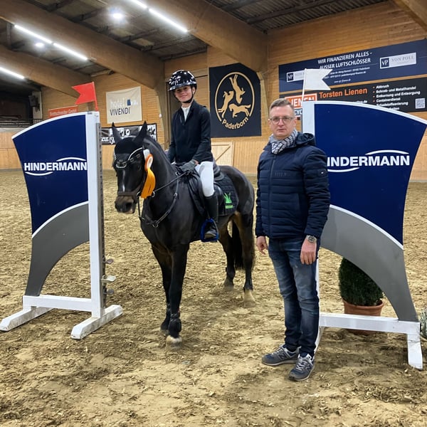 Vendiamo il nostro pony Welsh B, molto amato dai bambini, stallone "Balou Rocks", un vero talento sia nel salto che nel dressage. Dettagli: Nome: Balou Rocks Razza: Welsh B Età: 12 anni Altezza al garrese: circa 1,30-1,35 m Colore: Marrone scuro Documenti completi e registrazione come pony da gara Radiografie recenti disponibili Possibilità d'impiego e successi: Salto A* e A** (stile e tempo) piazzato Vinto in dressage E Vinto in prova al piattello Sicuro in terreni, tranquillo al carrello – passa senza problemi fossi d’acqua e salta tronchi Carattere e idoneità: Balou è un pony bellissimo, con una solida base sportiva. Mostra sempre grande potenziale sia nel salto che nel dressage. Per il cavaliere giusto, è un vero sogno! Non è un pony adatto ai principianti, ma perfetto per bambini o giovani ragazzi con ambizioni nel salto e nel dressage. Ulteriori informazioni: Manutenzione regolare degli zoccoli, vaccinato e dewormato. Viene affidato solo a persone di assoluta fiducia, poiché si passa a un cavallo di taglia grande. Prova di monta: Per la prova di monta chiediamo 20 €, che verranno successivamente detratti dal prezzo di acquisto. Per interesse o ulteriori domande, non esitate a contattare: 00491751271621