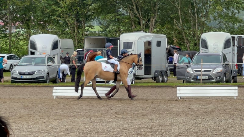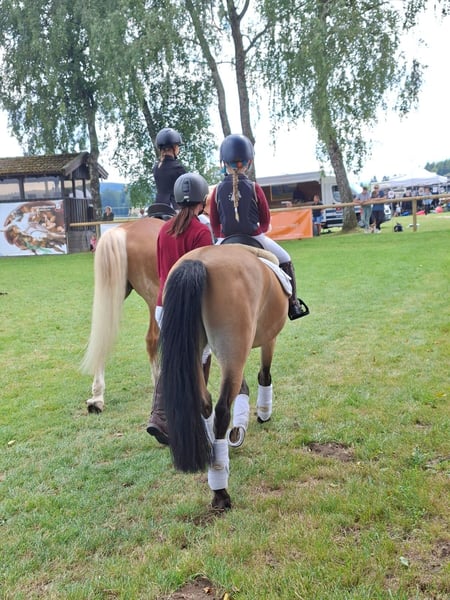 Zum Verkauf steht ein 15jähriger charmanter Welsh-B Wallach, geboren im Jahr 2011. Mit seinem freundlichen und sehr aufgeschlossenem Wesen und seiner Bewegungsfreude ist er ein idealer Partner für ambitionierte und mutige Nachwuchsreiter, die Spaß an einem temperamentvollem Pony haben. Renzo (genannt Pepino) überzeugt durch seine seine liebe Art im Umgang und Neugierde. Wenn man ihn ruft kommt er immer angetrabt. Er ist mutig und selbstbewusst und weiß sich zu präsentieren. Derzeit wird er von einer 13jährigen Reiterin in der Dressur und in Stangen- und Springstunden gearbeitet und auf seinen ersten Parcoure vorbereitet. Regelmäßig nimmt er beim Freispringen teil und zeigt hier große Freude und Potenzial (max. 110 cm). Ab und zu zeigt er die Tendenz zum "überspringen". Bei angemessenem Tempo ist das beim Springen unter dem Sattel aber gut zu sitzen. Beim Spazierengehen im Gelände ist er sehr brav und anständig. Er zeigt sich hier mutig und unerschrocken. Wir könnten ihn uns auch gut als Fahrpony vorstellen. Das wurde aber bisher nicht von uns ausprobiert. Pepino ist topfit, robust und war bisher immer gesund. Keine Krankheiten, oder gesundheitliche Einschränkungen sind bekannt. Die Zähne wurden regelmäßig kontrolliert und er ist turnierregelkonform geimpft. Bei uns steht er in einer Box mit täglich Paddock und im Sommer stundenweise auf der Koppel gemeinsam mit unserem Wallach. Hier ist er verspielt und braucht einen Partner, der damit umgehen kann. Aufgrund seiner Bewegungsfreudigkeit können wir uns auch gut einen Offenstall mit passenden Partnern vorstellen. Er trägt vorne Eisen. Warum geben wir einen so tollen Kerl ab? Wir haben ihn vor 2 Jahren für unsere jetzt 6jährige Tochter als "Kinderpony" gekauft und mussten aber leider feststellen, dass er für ein so junges und unerfahrenes Reiterlein zu viel Temperament und Go hat. Das Reiten an der Longe klappt sehr gut aber zum freien Reiten reicht es noch lange nicht. Unsere Empfehlung wäre ein mutiger und ambitionierter jugendliche Reiter, der bereits gut im Sattel sitzt und auch weiß, wie man sich durchsetzt. Ab und zu fragt Pepino beim Reiten seine Grenzen ab - nach Klarstellung läuft er aber wie am "Schnürrchen". Dennoch haben wir in den letzten beiden Jahren die Zeit mit vielen wunderschönen Momenten und auch Erfolgen mit Pepino erleben dürfen. Er wurde von unserer damals 4-5jährigen Tochter in der Ponyführzügelklasse regelmäßig auf Turnieren vorgestellt, wie z.B.: *1. Platz bei den YoungTalents in München Riem 2024 *3. Platz beim Nürnburger Burg Pokal im Rahmen der Pferd International in München sowie vielen weiteren vorderen Plätzen. Achtung: Auch hier zeigt er sein Temperament ist aber immer händelbar. Aufgrund seiner sportlichen und eher zierlichen Statur empfehlen wir ein maximales Reitergewicht von 55 kg und eine Größe von maximal 165 cm. Bei Interesse oder für weitere Informationen stehe ich gerne zur Verfügung. Ein persönliches Kennenlernen ist jederzeit möglich.