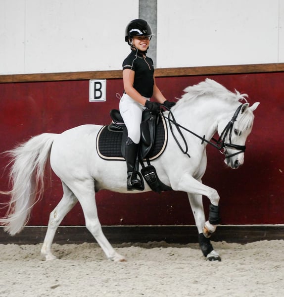Pancho ist ein liebenswerter 16-jähriger Wallach mit einer Größe von 1,26 m. Er ist im Dressurwettbewerb der Klasse M1 erfolgreich. Er ist ein angenehmer, vorwärts gerittener Pony und äußerst zuverlässig. Pancho eignet sich auch für Anfänger oder unsichere Reiter. Neben seinem Erfolg im Viereck ist Pancho auch ein begeisterter Ausreitpferd und kennt den Straßenverkehr bestens. Pancho kann auf eine beeindruckende Anzahl an Titeln zurückblicken: - 9-facher regionaler Meister - 2-facher niederländischer Meister Der Verkauf erfolgt inklusive aller Zubehörteile (max. 2 Jahre alt), mit Ausnahme eines 15-Zoll-Custom-Sattels, der ggf. übernommen werden kann. Im Jahr 2024 wurde Pancho vollständig röntgenologisch untersucht. Bitte nur bei ernsthaftem Interesse melden.