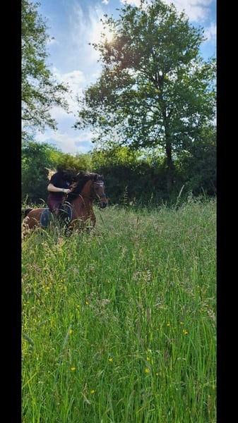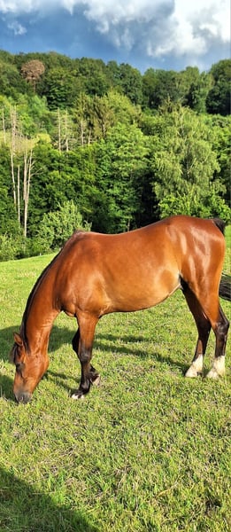 Con grande dispiacere devo separarmi dal mio pony castrone di 16 anni, Aragon. Aragon è alto 1,36 m, compatibile con il branco e adora essere coccolato e coinvolto nelle attività. Cerco per lui un paddock all'aperto, poiché soffre di artrosi al ginocchio anteriore destro. A causa dell'artrosi, può essere montato solo in modo molto limitato. La cavallerizza dovrebbe pesare non più di 40 kg. Aragon è un mix di Arabo e Welsh. Per noi, un posto stabile a lungo termine è più importante del prezzo.