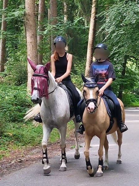 Wir verkaufen schweren Herzens und nur umständehalber unser super tolles Palomino Ausnahmepony. Er ist sehr gut und fein geritten. Filou ist ein absoluter Allrounder, sowohl englisch geritten als auch western. Er ist Gelände- und Verkehrssicher, sowohl alleine als auch in der Gruppe. Er ist sehr nervenstark, was sich schon einige male bei Orientierungsritten ausgezahlt hat und was ihm mega viel Spaß macht. Auch im Breitensport beim Action - und Präzesionsparcours und bei Gelassenheittsprüfungen macht er mit Freude mit. Er ist in den letzten 2 bis 3 Jahren auf ein paar Turnieren in der Dressur auf E Niveau, Reiterwettbewerb, Spingreiterwettbewerb jump and run und ein bis zwei E- Springen gestartet. Er hat einige Westernabzeichen gemacht, Horsemanship, Trail, Pleasure, Geländeprüfung und kann ohne Probleme bis zum Bronzenen Westernabzeichen geritten werden. Wir haben mit ihm sehr vielseitig und abwechslungsreich gearbeitet. Er geht gut an der Longe, liebt das Gelände, kennt Dualaktivierung sowohl vom Boden aus als auch geritten, Stangentraining, Freiarbeit, Gelassenheitstraining, spazierengehen,... Er kann auch ein paar Kunststücke. Seine größte Stärke ist seine Gelassenheit und das Gelände. Er ist kein Buckler oder Steiger. Er ist bei der FN als Turnierpony eingetragen und auch bei der EWU registriert. Er wurde regelmäßig geimpft und entwurmt, Zähne regelmäßig kontrolliert und auch frisch gemacht, hat sehr gute Hufe, ist brav bei der Hufpflege (er ist Barhuf) und geht sehr gut in Hänger. Ich denke er wäre auch zum Fahren geeignet. Filou ist 16 Jahre alt, aber nicht verbraucht, gesund und topfit, da wir sehr pferdefreundlich und nicht zu viel aber auch nicht zu wenig mit ihm gearbeitet haben. Er ist 1,35 m und kein Gewichtsträger (das Mädchen auf den Bildern ist 16 bzw 17 Jahre alt, ca 1,66 m groß und wiegt ca 50 bis 53 Kilo) Sie reitet ihn seit sie 10 Jahre alt ist.. Daher suchen wir für ihn einen kleinen leichten Erwachsenen oder ein Kind, dass gut reiten kann oder mit guter Unterstützung von pferdeerfahrenen Eltern begleitet wird. Filou wird nur in allerbeste Hände gegeben an Menschen mit Pferdeverstand, die immer fair und liebevoll mit ihm umgehen, ihn wertschätzen und wo er hoffentlich einen Endplatz hat. Er wird nicht an einen Schulbetrieb oder Händler verkauft. Filou ist im Sommer Goldfarben (etwas dunkler) und im Herbst/Winter wird er ganz hell. Er kennt sowohl Offenstall als auch Boxenhaltung. Bei Interesse können gerne auch Videos per WhatsApp geschickt werden. Probereiten ist nach Absprache möglich, gerne auch mehrmals. Platz vor Preis. Mehr Infos zu ihm und Gründe für den Verkauf gerne per Telefon.