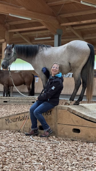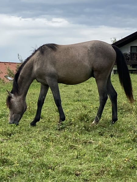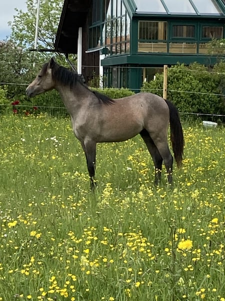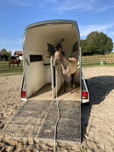 Geb. 01.05.2023 Standort: 87672 Roßhaupten Preis: 2.900,- € Größe: wird ca. 135 cm Farbe: Aktuell: Braun/Grau, entwickelt sich zu Schimmel mit schwarzem Behang Kontakt: 0171/3466872 Mein Kienbergs Diamond Deluxe ist ein charmanter, motivierter Youngster, der mit viel Herz und Verlässlichkeit überzeugt. Sein erstes Lebensjahr durfte er aufwachsen auf den großen Weiden in einer großen Herde des Gestüts Kienberg in Rennertshofen. Seit seinem Einzug bei mir hat er seinen Charakter deutlich gezeigt: verspielt, neugierig, mutig und offen für Neues. Sein Ausbildungsstand umfasst zwei Jahre Horsemanship am Boden – er beherrscht Verladen, Hufe geben, Hufschmied, Anbinden, Satteln, auch das Wandern alleine macht ihm Spaß, ebenso war er schon Schwimmen mit mir. Anspruchsvolle Trails (Extreme Trail) und mehrere Geschicklichkeitsparcours zählen auch zu seinem Erfahrungsschatz. Diamond liebt Denksportaufgaben und beweist dabei klare Konzentration und Freude an der Herausforderung. Letzten Sommer durfte er auf einer Alm verbringen zusammen mit einer Kuhherde und vielen Radfahrern. Verkauft wird er bewusst in Horsemanship-Hände, die ihn fachlich fordern und weiter fördern können. Er ist ideal für jemanden, der seinen Pferdesport mit ruhiger, freundlicher, konsequenter Arbeit weiter vorantreiben möchte und Spaß daran hat, ihn geduldig zu fördern. Diamond ist bereits gegen vieles desensibilisiert und zeigt sich sportlich und bewegungsfreudig.Er liebt die Bewegung, aber vor allem die geistige Herausforderung. Wichtige Hinweise: Diamond wünscht sich einen erwachsenen Partner, der max. 60 kg wiegt, wenn er geritten werden soll. Aber auch als toller Partner für Menschen, die Pferde nur am Boden ausbilden möchten ist er ideal. Da er über ein gewaltiges Potential verfügt, kann er auch als Showpferd eingesetzt werden. Er entwickelt sich weiter: seine Farbe verändert sich von Braun/Grau zu Schimmel mit schwarzem Behang. Seit dem ersten Tag bei mir dokumentiere ich auf meinen Seiten in Instagram und Facebook jeden Fortschritt mit Videos zu jedem Schritt – so können Interessierte den Weg nachvollziehen, vom ersten Kontakt bis heute. https://www.instagram.com/silvia_mathoi_horsemanship/ https://www.facebook.com/silviamathoihorsemanship Wenn Du Interesse an Diamond hast, freue ich mich über eine Nachricht oder Anruf unter der angegebenen Nummer. Gerne stelle ich Dir weitere Bilder und Details zum Charakter und dem richtigen Training vor. Diamonds neue Herausforderung wartet – mit Dir an seiner Seite könnte er der perfekte Partner für eine tolle Horsemanship-Laufbahn werden.