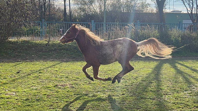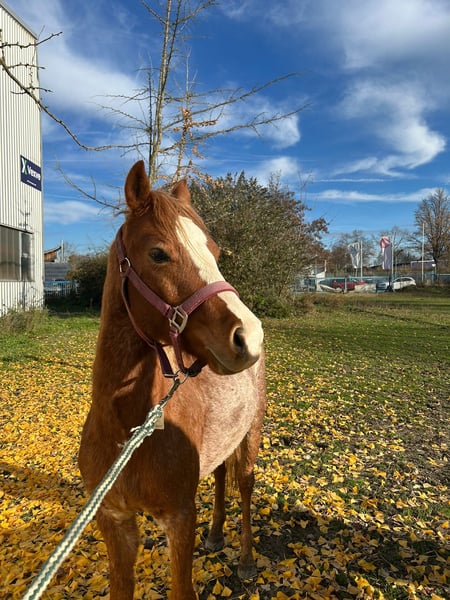 Finn ist mit seiner einmaligen Farbzeichnung und seinem harmonischen Körperbau ein richtiger Hingucker. Dazu kommt sein hübsches mit seinen wunderschönen Knopfaugen. Finn kommt immer sehr zutraulich auf den Menschen zu, hält aber immer einen Höflichkeitsabstand und würde nie in die Tasche krabbeln oder etwas fordern. Er ist sicher anlongiert und kennt das Reitergewicht im Schritt und Trab. Im April wird er 5 jährig und ist bereit für die weitere Ausbildung. Laute, wilde Kinder sind für ihn noch nicht das Richtige. Mit mehr Routine im Umgang wird er aber auch damit gut klarkommen. Finn geht lieb mit aus der Herde, kennt auch Alleinspaziergänge mit dem Menschen über die Straße, ins Feld und den Wald. Wer ihn Kennenlernen möchte, darf sich gerne telefonisch melden. Bei Anklicken der automatischen Antwort, bitte eine Tel Nr angeben. Sonst kann ich keine weiteren Infos schicken.