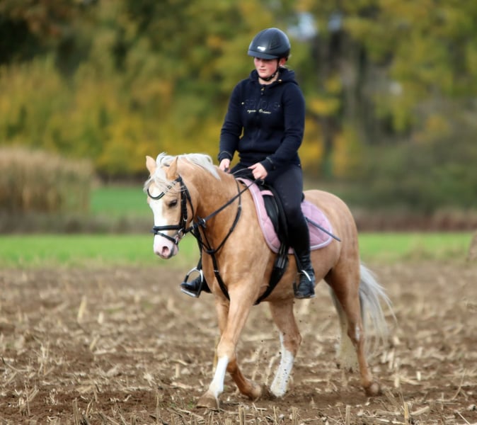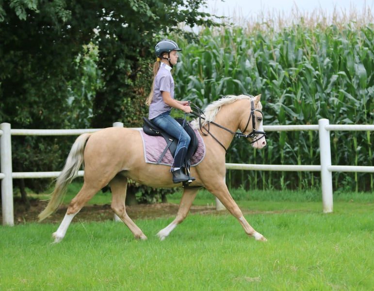 Verkaufe jungen Welsh-B Wallach – ideale Freizeitbegleitung oder für ambitionierte Reiter mit Turnierpläne Dieser charmante Welsh-B Wallach, geboren im Jahr 2022, überzeugt durch sein freundliches Wesen und sein vielversprechendes Potenzial. Mit seinem eleganten Palomino-Farbe und seinem kompakten Stockmaß von 136 cm ist er ein echter Blickfang und perfekt für den Dressur-, Springen oder als Freizeitpartner geeignet. Der 4j Prince ist gut geritten und zeigt bereits erste vielversprechende Ansätze im Dressurtraining, Springstunden, auf dem Platz, im Wald oder in der Abteilung. Longestunden macht Prince mit Kindern ab 6 Jahre regelmäßig. Selbstständig geritten von Kindern ab 8 Jahre. Sein ausgeglichener Charakter macht ihn zu einem zuverlässigen Partner, der sowohl für den Freizeitreiter als auch für den aufstrebenden Turnierreiter interessant ist. Aufgrund seiner Rasse und seines Alters bietet er eine hervorragende Basis für eine weitere Ausbildung in der Dressur. Er ist gesund, regelmäßig entwurmt, geimpft und wurde regelmäßig tierärztlich betreut. Die Zähne sind geraspelt. Eine klinische Ankaufsuntersuchung wird zeitnah zur Übergabe vom Tieratzt durchgeführt und Protokoll ausgehändigt. Ein Pferd mit viel Potenzial, das noch viel Freude und Erfolg in eine Ponybegeisterte Familie bringen kann. Beide Eltern sind erfolgreich in Sport. Bei Interesse freuen wir uns auf Ihre Kontaktaufnahme. Eine Besichtigung bzw. Proberitt kann nur telefonisch vereinbart werden. Mehrere Videos vorhanden. Bitte anrufen um Videos zu erhalten. Tel.: 0049 +174 / 4120385 oder 0049 +172 / 42 82 881