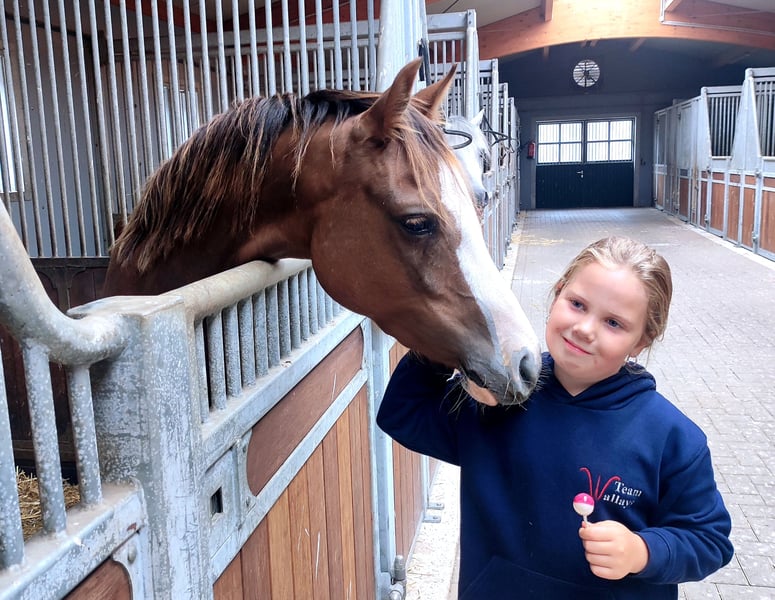 Vendo potro joven de Welsh B, un caballo ideal para ocio o para jinetes ambiciosos con planes de competición. Este encantador potro de Welsh B, nacido en 2022, destaca por su carácter amistoso y su prometedor potencial. Con su elegante color palomino y una altura de 136 cm, es un verdadero imán para las miradas y perfecto para disciplinas como doma, salto o como compañero de ocio. Prince, de 4 años, está bien montado y ya muestra los primeros indicios prometedores en entrenamiento de doma, clases de salto, en el paddock, en el bosque o en la pista. Realiza sesiones de longeo con niños a partir de 6 años de forma regular. Montado de forma independiente por niños desde los 8 años. Su carácter equilibrado lo convierte en un compañero fiable, interesante tanto para el jinete de ocio como para el aspirante a competidor. Por su raza y edad, ofrece una excelente base para continuar su entrenamiento en la doma. Está sano, desparasitato regularmente, vacunado y ha sido atendido por veterinarios de forma periódica. Sus dientes han sido raspados. Se realizará un examen clínico de compra poco antes de la entrega, y se entregará el informe correspondiente. Un caballo con mucho potencial que puede aportar mucha alegría y éxito a una familia amante de los ponis. Ambos padres tienen experiencia en competición. Si está interesado, no dude en contactarnos. Las visitas y pruebas de manejo solo se pueden concertar por teléfono. Disponemos de varios videos. Por favor, llame para recibir los videos. Tel.: 0049 +174 / 4120385 o 0049 +172 / 42 82 881
