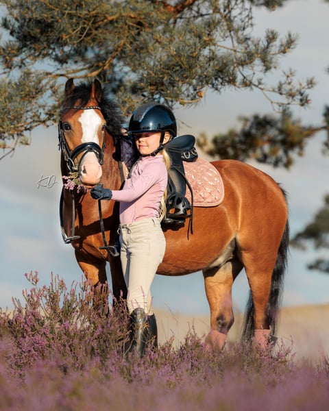 Met pijn in ons hart bieden we onze allerliefste kinder pony aan High Flown’s Ben&Jerry 6 jaar 120cm Benny is echt de allerliefste, allerknapste kinder pony! Hij heeft op 3 jarige leeftijd onze meiden leren paardrijden, en de afgelopen 3 jaar hebben ze de leukste dingen met hem beleefd, buitenritjes, verkleedpartijtjes, mee naar het bos en naar het strand, en talloze bixie wedstrijdjes, hij doet alles net zo braaf en is 100% betrouwbaar, ook voor de allerkleinste ruitertjes. Met een fanatiek ruitertje kun je volgende week een L proef starten of een parcours springen, en voor een beginnend ruitertje is het ook zo opstappen en wegrijden. Hij past zich volledig aan aan degene die erop zit. Kwaliteit, de looks en betrouwbaar. Alles wat je zoekt in een kinderpony! Vader: Paaskamp’s Princenhage Vader moeder: