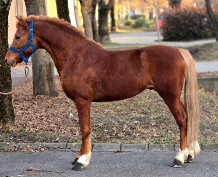 For sale is the fantastic Wagany! He is a pure Welsh Pony gelding with an incredible jumping ability (free jumping videos available!). Born in 2019, he stands 127 cm tall and has been ridden and driven in his leisure time. He is extremely well-behaved in handling and can be easily cared for by children and teenagers. He stands quietly during grooming and willingly gives all four hooves. Currently, he is shod (though this is not a must), and he is absolutely traffic-safe when driving with a carriage. He can be viewed at any time. We are happy to assist with transportation, either by driving ourselves (if the distance isn’t too far) or by arranging a cost-effective transport service.