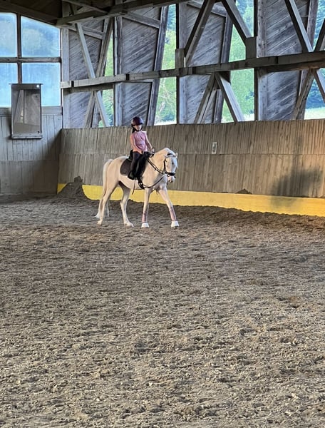 Annuncio di vendita: Splendido castrone Welsh-B in vendita Offriamo un bellissimo castrone Welsh-B in vendita. Caratteristiche: - Razza: Welsh-B - Sesso: castrone - Anno di nascita: 2019 - Colore: Cremello - Altezza al garrese: 135 cm - Disciplina principale: dressage Questo affascinante castrone conquista non solo per il suo colore appariscente, ma anche per il suo carattere amichevole e la sua voglia di imparare. È tranquillo in gara e può essere gestito facilmente dai bambini durante le competizioni. Conosce il salto natalizio, ha partecipato a vari eventi per bambini e si comporta bene anche con i principianti al longe.