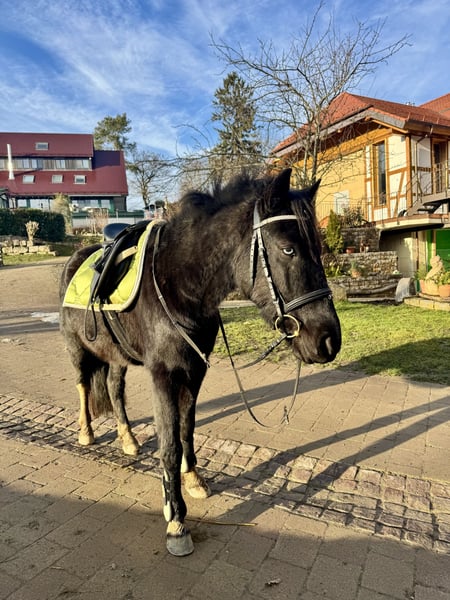 Goofy ist ein 2019 geborener Welsh-Mix-Ponywallach mit ca. 1,37 m Stockmaß. Er ist brav im Umgang, unkompliziert im Alltag und gut verträglich mit anderen Pferden. Beim Reiten zeigt sich Goofy lieb und zuverlässig – egal ob im Gelände, auf dem Platz oder beim Springen. Er ist motiviert, nervenstark und gibt seinem Reiter ein sicheres Gefühl. Ein tolles Pony für Kinder, Jugendliche oder den Freizeitbereich, das vielseitig einsetzbar ist.