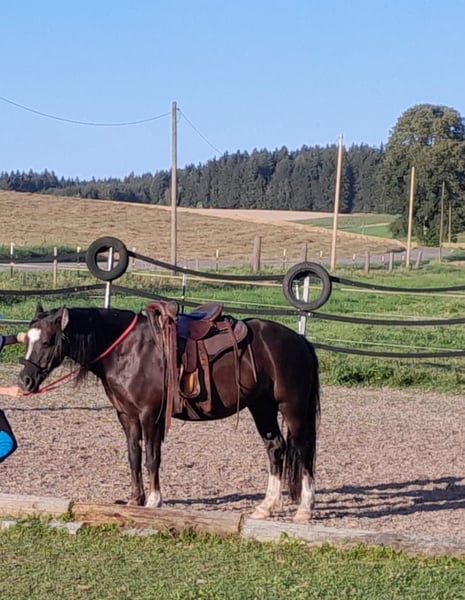 Synod Rosies-Pinup is a lovely and intelligent Welsh C Pony mare (Cob type) with a big heart and lots of potential. Full papers are available. Currently, Rosies is being ridden and worked in the arena and on trails by both children and adults. She particularly enjoys jumping, liberty dressage, and outings/nature walks. She also delights in all other disciplines such as groundwork, lunging, dual activation, equikinetics, long rein work, and fun obstacle courses. Due to her Cob type, she is well-suited for teenagers and small adult riders as well. With proper training, there is certainly even more potential in her! At her previous home, she spent several months in professional driving training and was driven single and pair. Rosies is healthy, barefoot, and the lowest-ranking horse in our small herd of mares in a paddock with other ponies. She appreciates strong bonds with her humans and will choose her special person herself. Rosies will only be placed in the best hands. For more information, please call.