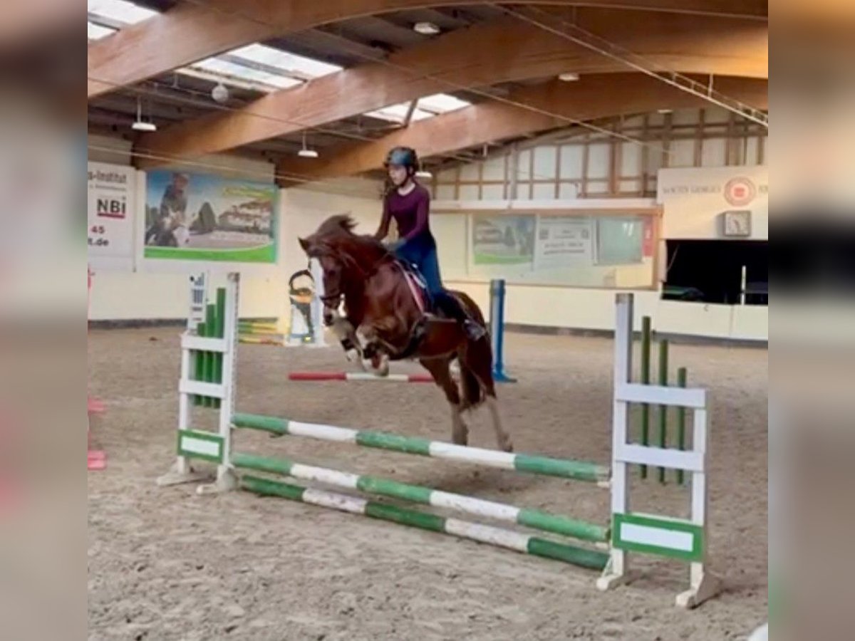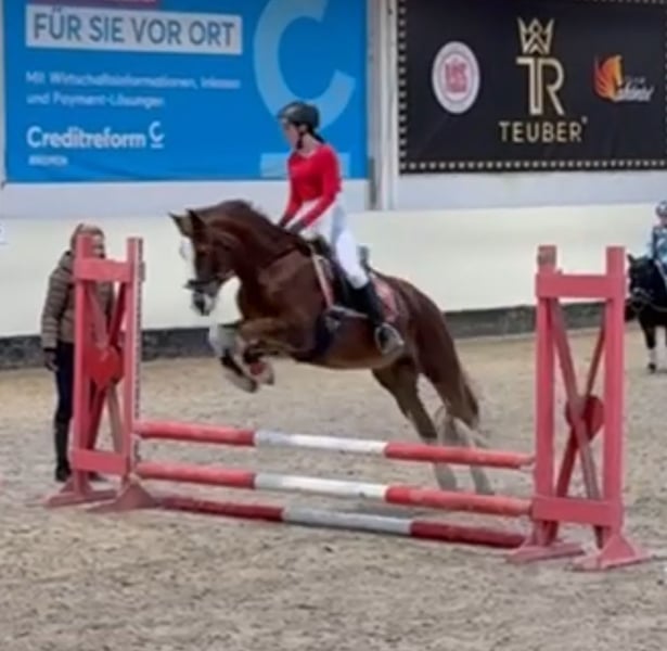 Unsere Seley möchte gerne eine feste Bezugsperson (keine kleinen Kinder) und am liebsten nur springen und ins Gelände reiten (Dressur muss zwar auch ab und zu sein, sagt sie, findet sie aber eher doof). Deckt super gut auch schmale Erwachsene bis 1,70 ab. Springt für ihr Leben gerne, ist eine absolute Lebensversicherung im Gelände. Bestimmt auch tolles VS-Pony. In der Dressur eher triebig und nicht sehr motiviert, dennoch auch schon Dressurreiterwettbewerbe mit 7er Noten bestritten und etliche Kinder durch Reitabzeichen getragen. Dennoch kein reines Kinderpony, da triebig und zickig/stutig im Umgang. In der Herde eher rangniedrig. War nie lahm o.ä. Probereiten gegen eine Gebühr von 30 Euro möglich.
