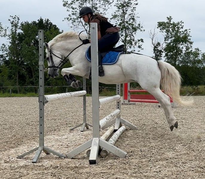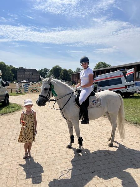 Pony muy estable con un ritmo excelente en galoppo, técnica de salto muy buena y bien entrenado en doma. En casa, saltamos hasta 85 cm. Actualmente con una nueva amazona (14 años, sin experiencia en concursos), en competición hasta 80 cm, ¡y en las primeras dos semanas de entrenamiento juntos ya ha obtenido buenos resultados! Por lo tanto, es un pony ideal para aprender a longear o para niños que ya puedan montar solos y sepan qué hacer. Muy bueno en campo. También ha sido colocado con niños pequeños de 5 años en paseos en riendas. Se pueden enviar muchos vídeos por WhatsApp.