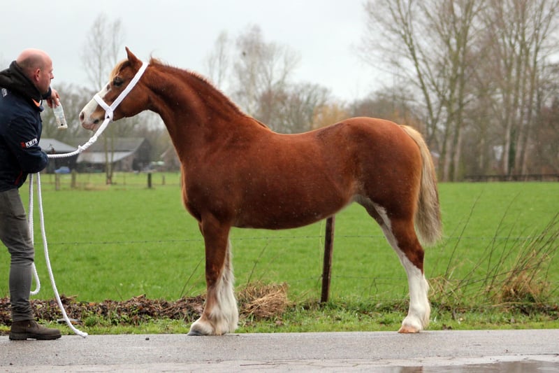 Angeboten für einen neuen 🏡. Neunjährige Sektion-C-Stute, Stockmaß ca. 1,30 m. Tochter aus der äußerst erfolgreichen Zuchtlinie Glebedale Razamataz x keurpräferierte Abercippyn Wild Honey. Als Fohlen nationaler Champion. Pony, das sich durch sehr gute Bewegungen auszeichnet und im Umgang freundlich ist. Regelmäßig beim Hufschmied gepflegt und entwurmt. Deckt Anfang Juni, voraussichtlicher Geburtstermin. Videos verfügbar +31640560496