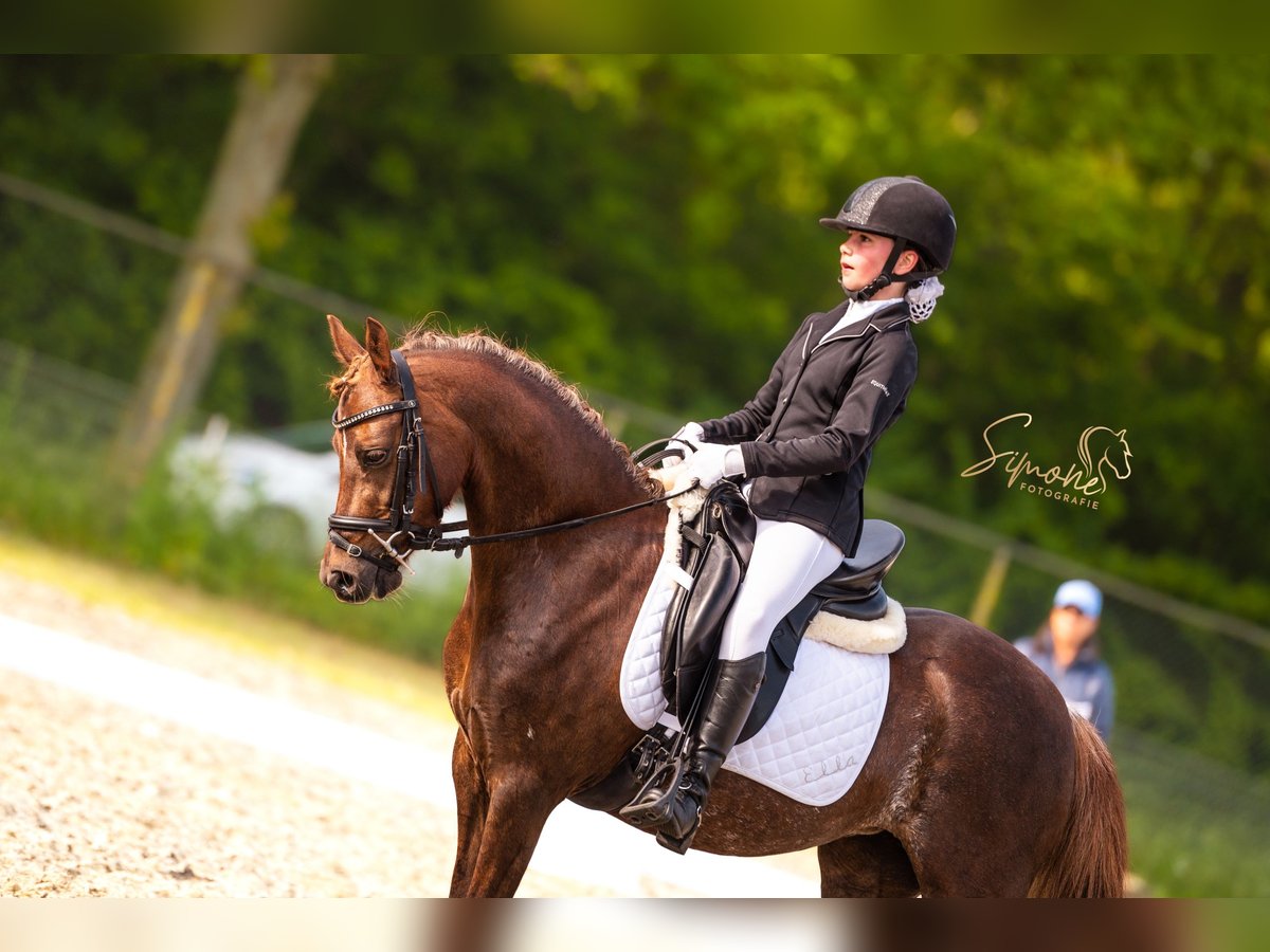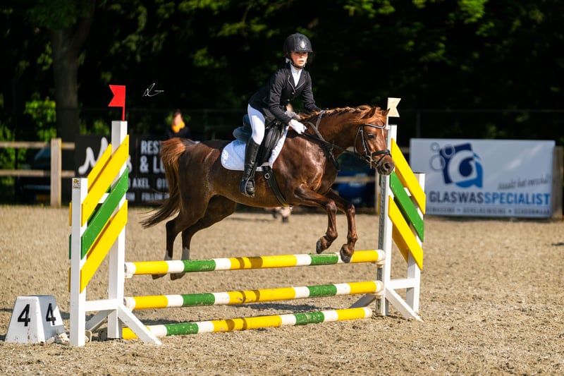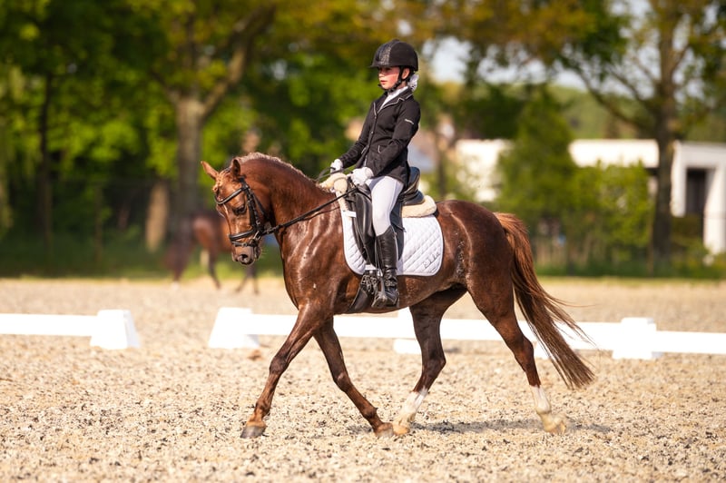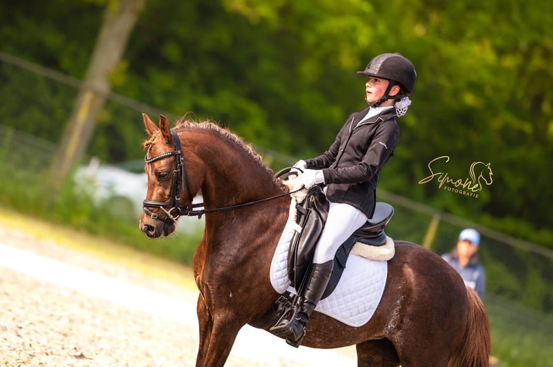 Ella (Elegance) is een pony met een pittig karakter en niet geschikt voor een beginnende, onzekere ruiter. Ze is klein van stuk, maar heeft met haar donker bruine vacht, met hier en daar een witte vage vlek in flanken , bruine manen en staart, fijne benen met achter witte sokken en fijn hoofd met kleine witte bles op haar voorhoofd een mooie sportieve uitstraling. Haar ruiter rijdt in de M1 dressuur met 16 winstpunten en is klaar om naar M2 te gaan. Ella houdt ook van springen en heeft in 2023 deelgenomen aan springwedstrijden 60 en 70 cm en was reservekampioen. Ella is braaf bij hoefsmid, (tand)arts , loopt de trailer in en uit en is jaarlijks ingeent .